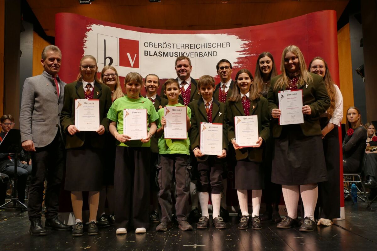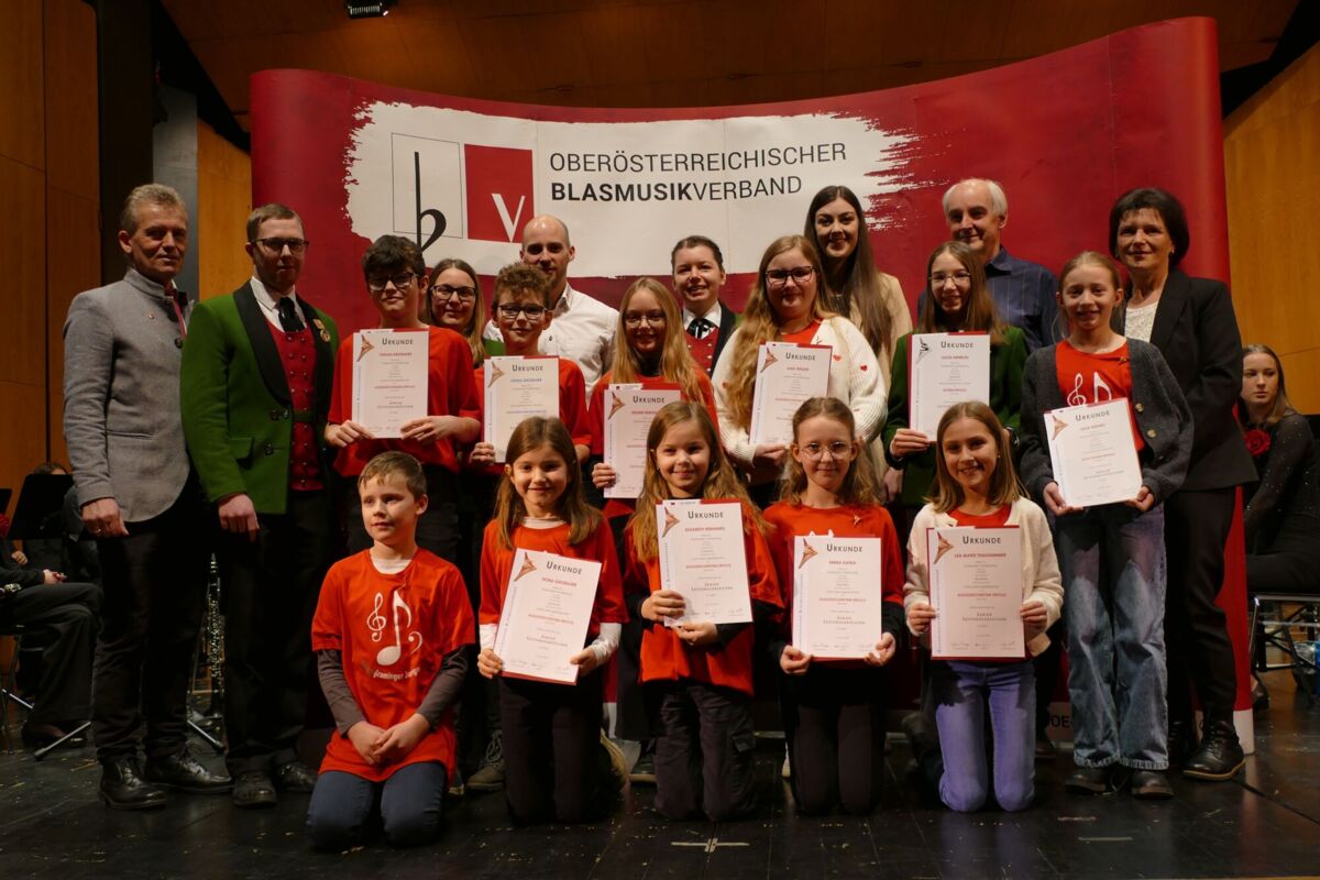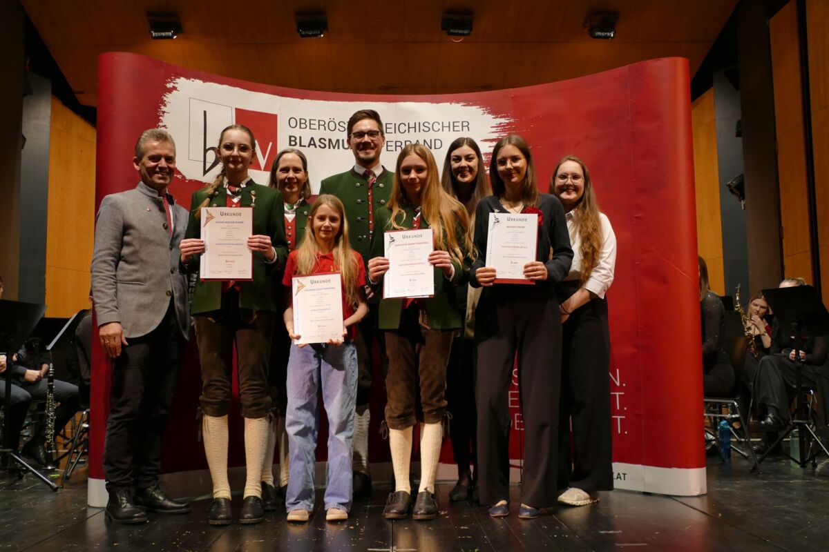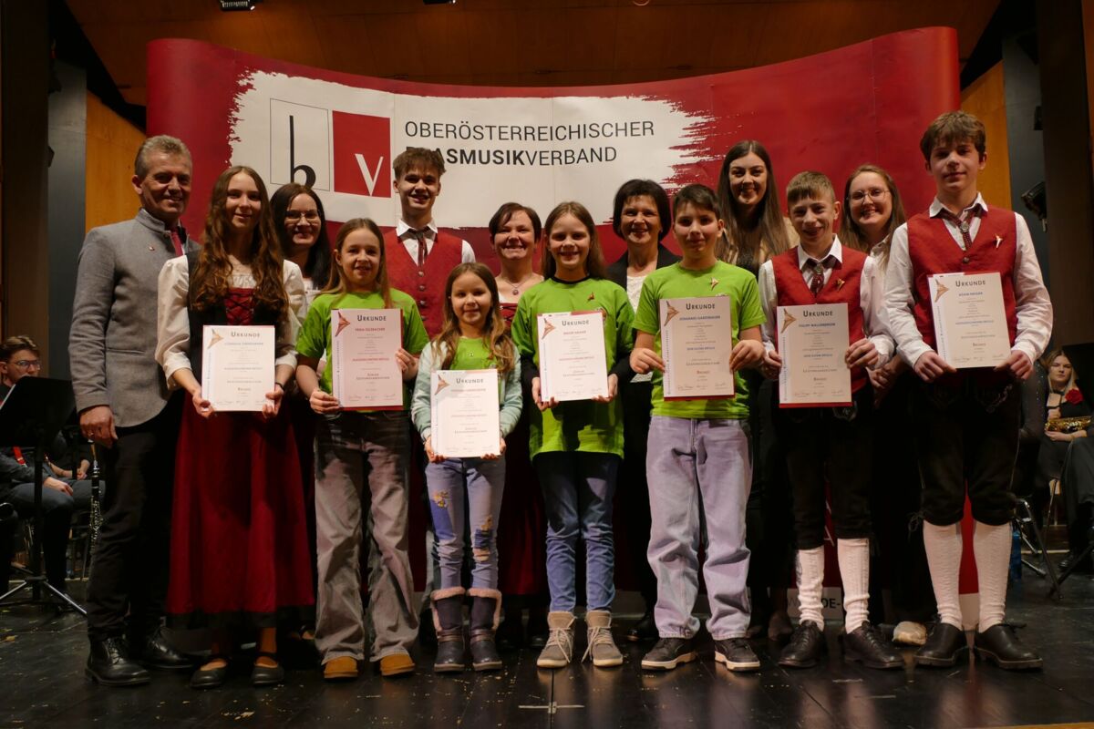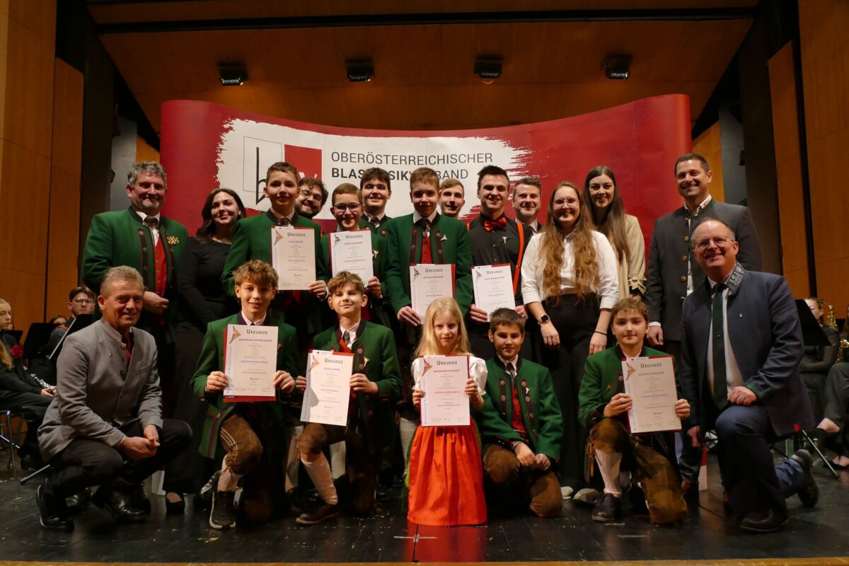 Insgesamt 201 junge Blasmusiker meisterten im vergangenen Jahr erfolgreich die sogenannten Übertritts‑ und Leistungsprüfungen. Als Anerkennung erhielten sie ihre wohlverdienten musikalischen Leistungsabzeichen – beginnend mit dem „Junior“-Abzeichen als erste wichtige Hürde für die jüngsten Talente bis hin zu den anspruchsvollen Leistungsprüfungen in Bronze, Silber und Gold.
