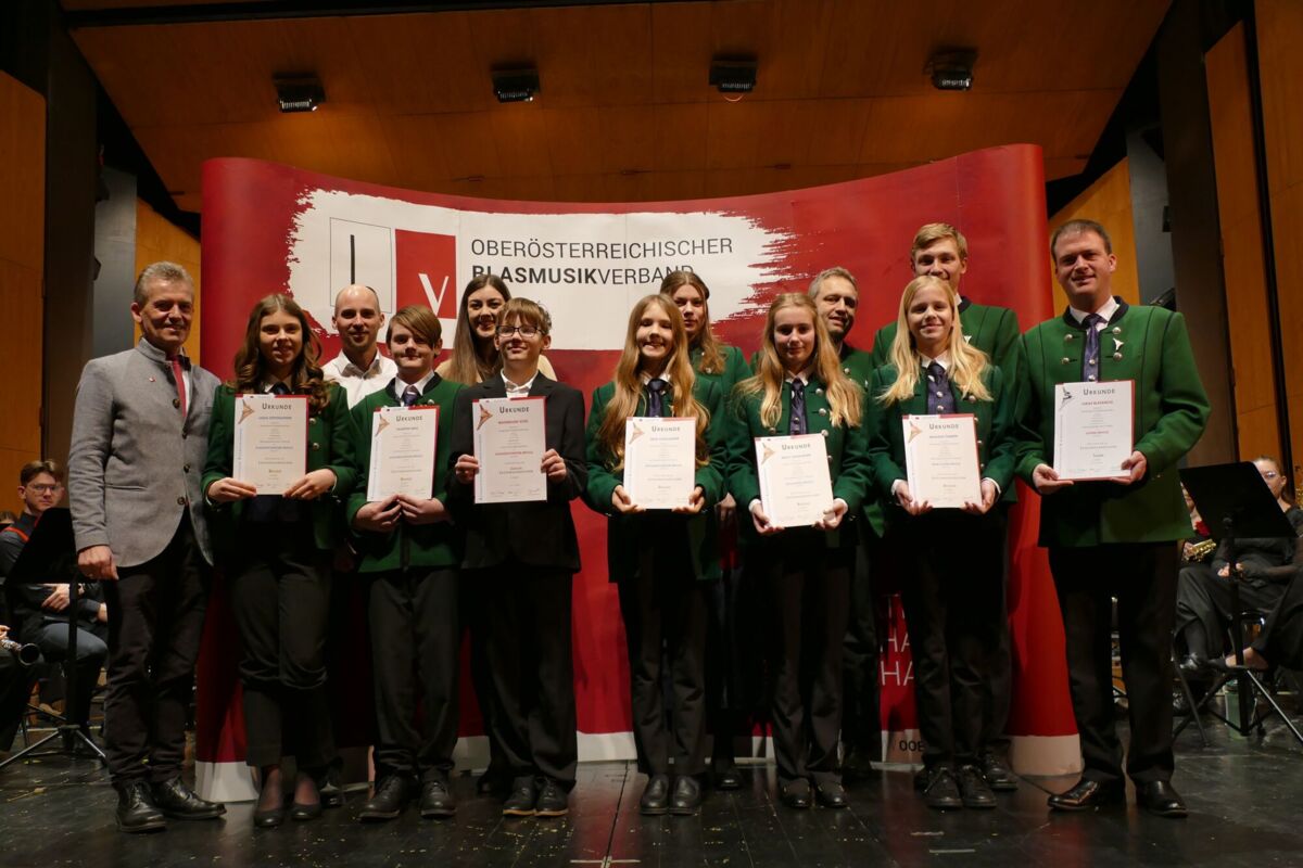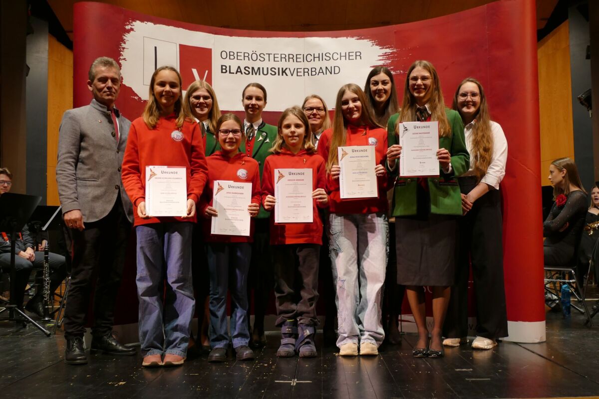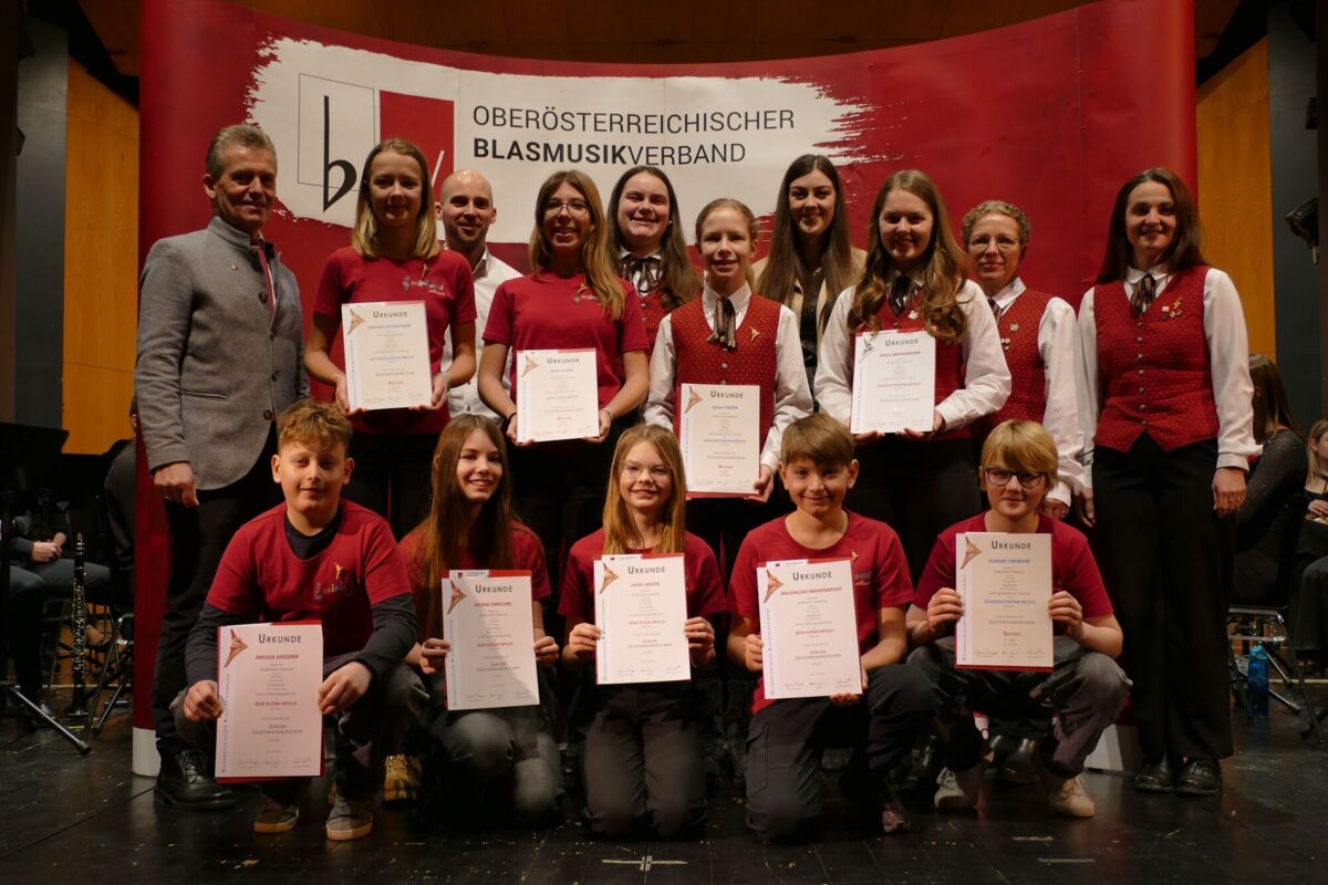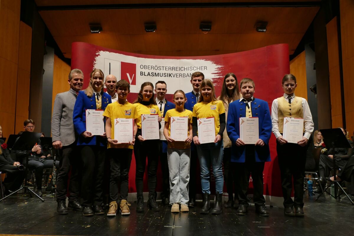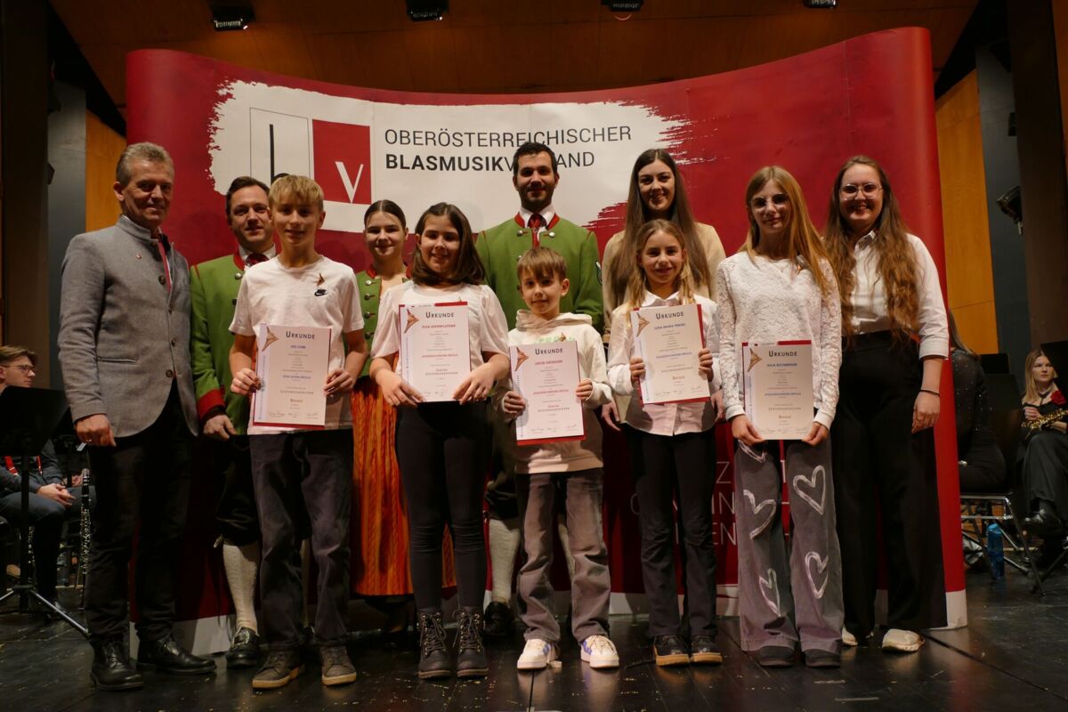 Insgesamt 201 junge Blasmusiker meisterten im vergangenen Jahr erfolgreich die sogenannten Übertritts‑ und Leistungsprüfungen. Als Anerkennung erhielten sie ihre wohlverdienten musikalischen Leistungsabzeichen – beginnend mit dem „Junior“-Abzeichen als erste wichtige Hürde für die jüngsten Talente bis hin zu den anspruchsvollen Leistungsprüfungen in Bronze, Silber und Gold.