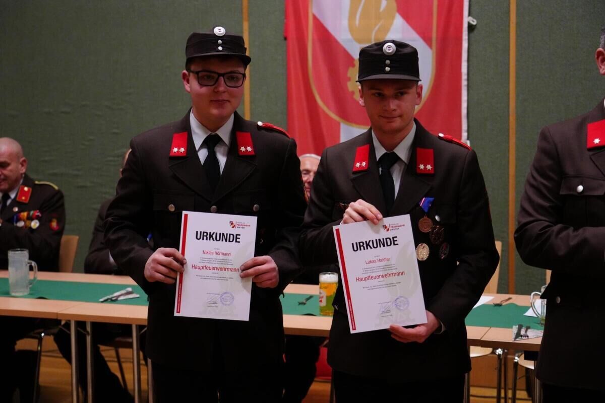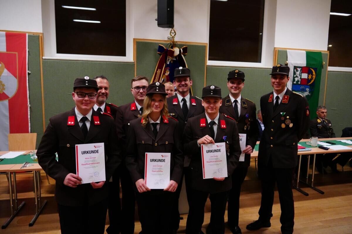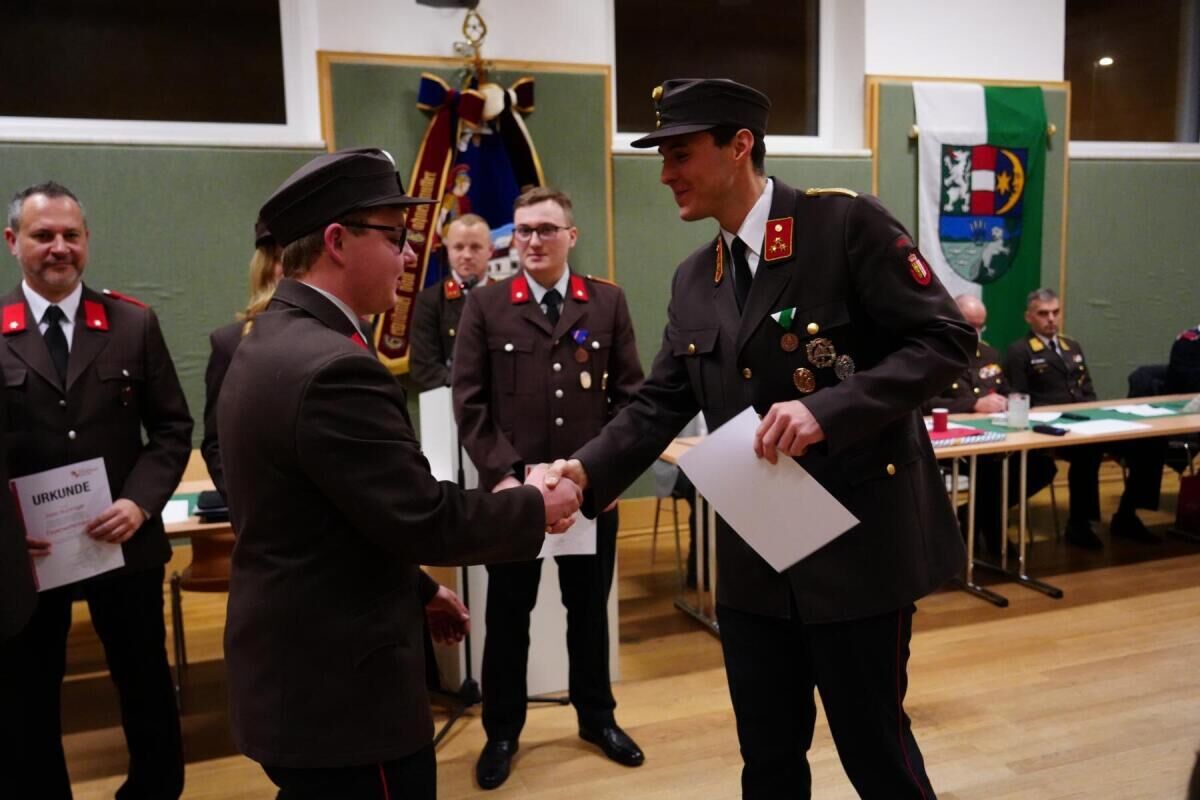 Sieben Kameraden wurden bei der Hauptversammlung befördert, drei für ihre langjährige Mitgliedschaft bei der Feuerwehr geehrt.