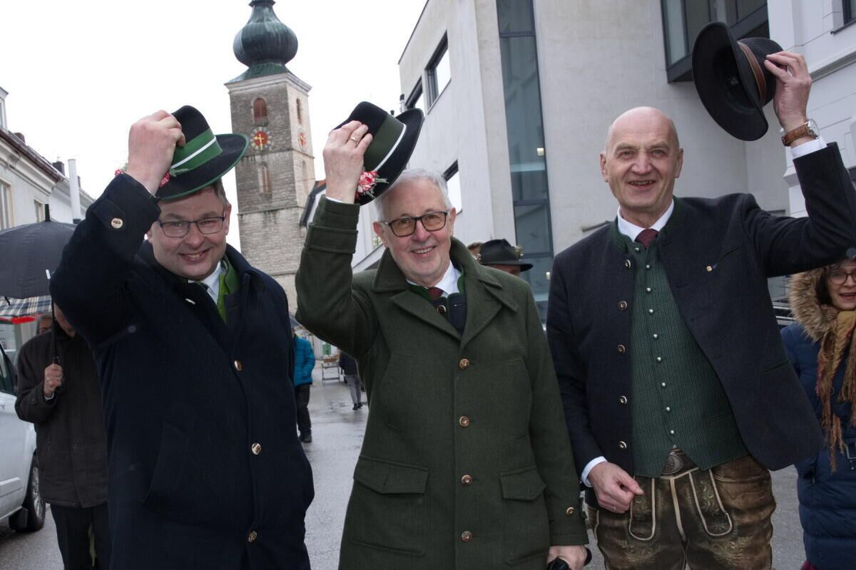 „Angesungen“ zu werden ist für Prominente aller Kategorien eine Frage der Ehre. Zum Geldbörsel greifen musste für eine Weinspende unter anderem der ÖVP-Landesrat Christian Dörfel. Der Bürgermeister von Steinbach/Steyr kam trotz dem bescheidenen Wetter mit nackten Wadln in seiner Krachlederhose zur Veranstaltung.