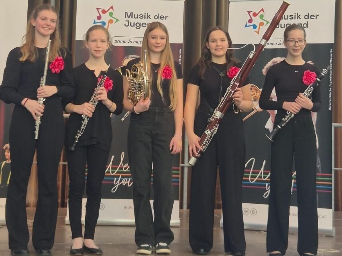 Das Holzbläserquintett „Queentett“ erreichte einen ersten Preis mit 84,20 Punkten. Elisa Forster, Franziska Hinterplattner und Klara Widegger werden an der LMS Bad Hall von Thomas Rischanek, Hubert Riepl und Bernhard Parkfrieder unterrichtet. Genoveva Poinstingl wird an der LMS Wolfern von Eva Scheer unterrichtet, Valerie Rapperstorfer an der LMS Kremsmünster von Anita Kapsamer.