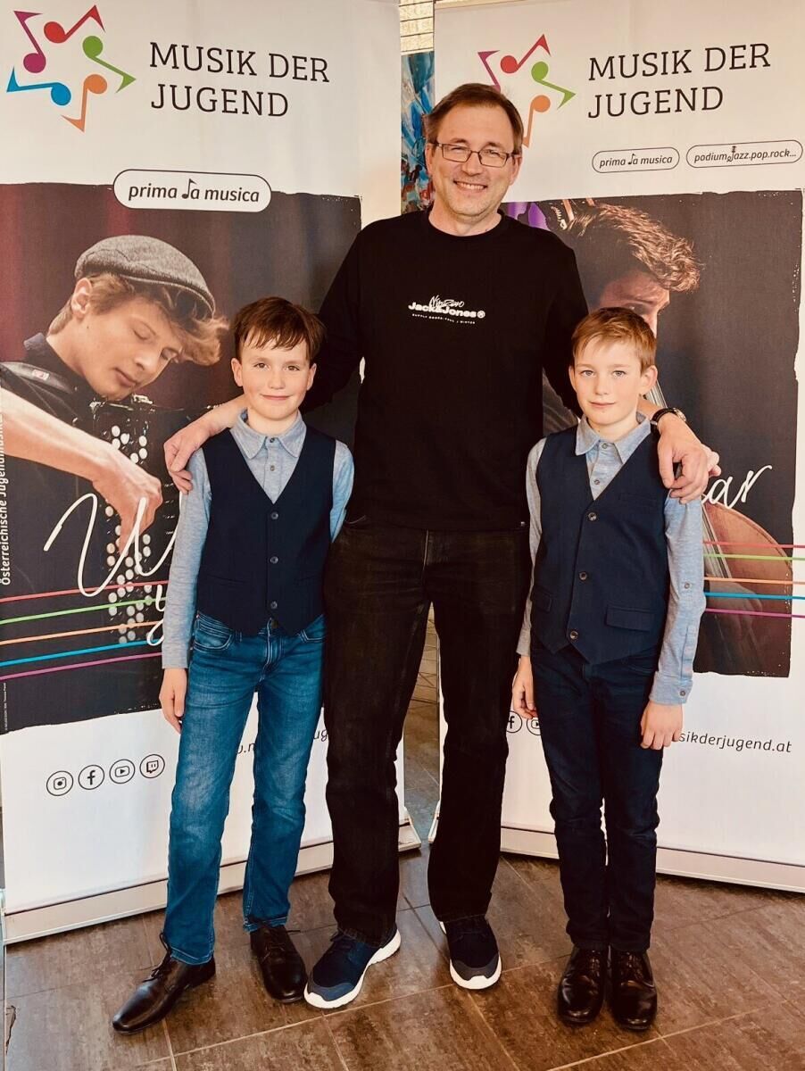 Einen ersten Preis in der Altersgruppe B in der Kategorie Kammermusik für Schlagwerk erreichten Mark Fröschl und Paul Hieslmair mit ihrem Ensemble PM Rhythm. Die beiden werden an der Landesmusikschule Bad Hall von Vitali Beladzed unterrichtet.