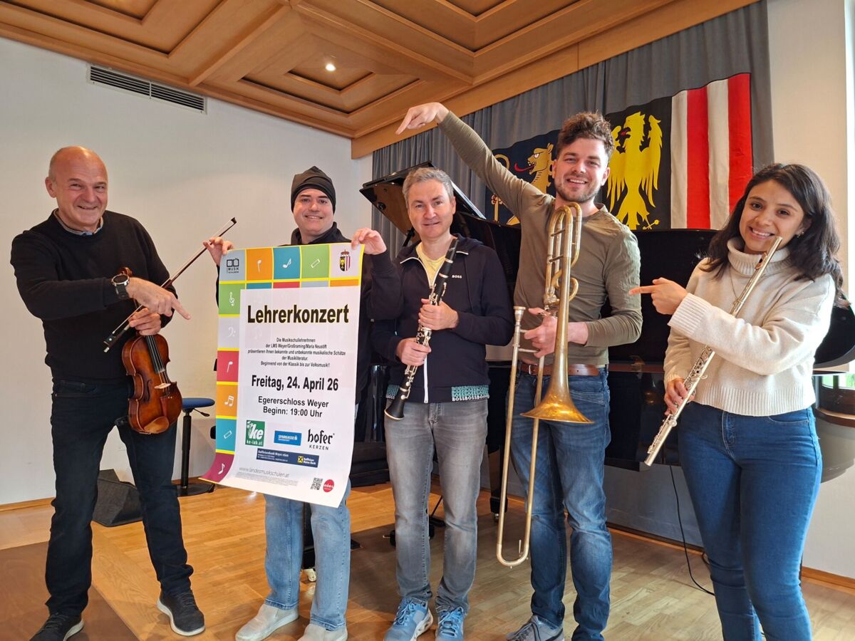 WEYER. Wenn sich am Freitag, 24. April, um 19 Uhr die Türen des Festsaals im Egerer Schloss öffnen, beginnt eine Reise in die Welt der Musik: Das Lehrerkonzert der LMS Weyer/Großraming/Maria Neustift verspricht ein Erlebnis, das gleichermaßen berührt, inspiriert und begeistert.