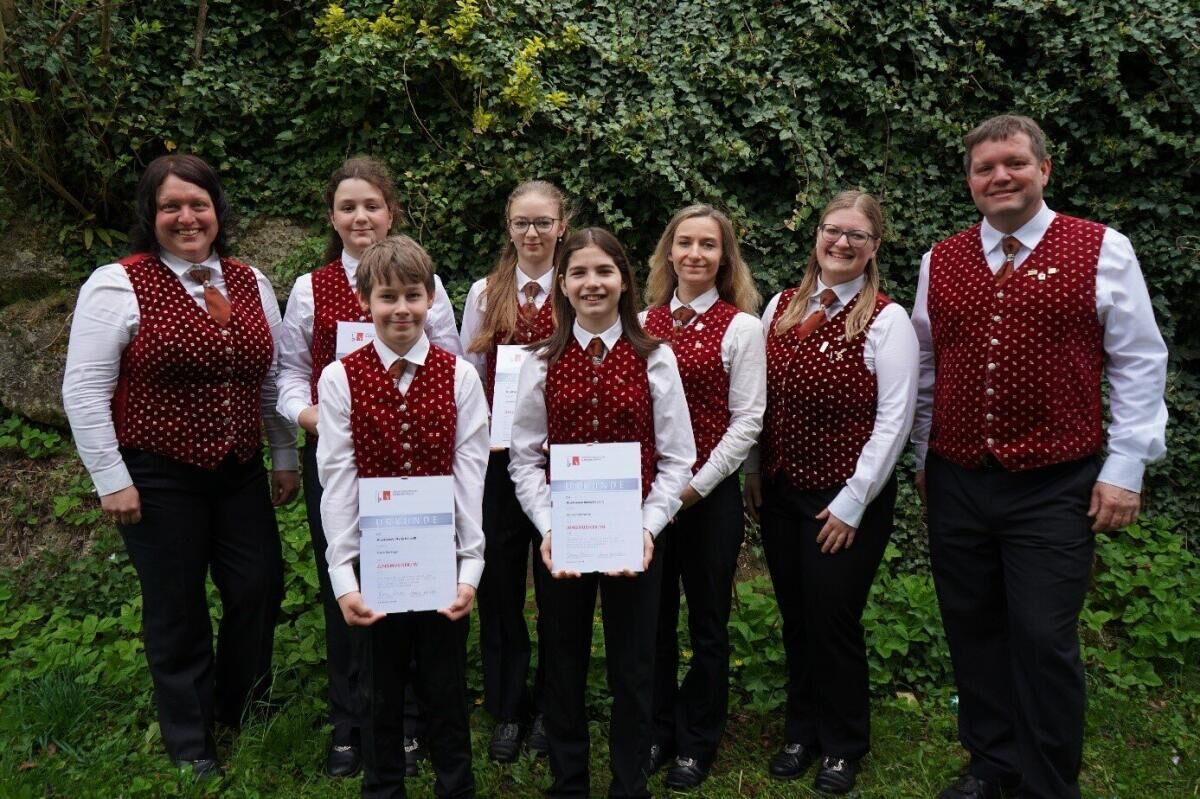 Der Musikverein darf sich zudem über Zuwachs freuen. Theresa Hörmann, Hannah Kaltenrinner, Daniel Merkinger und Michaela Stubauer wurden am Sonntag in den Verein aufgenommen.