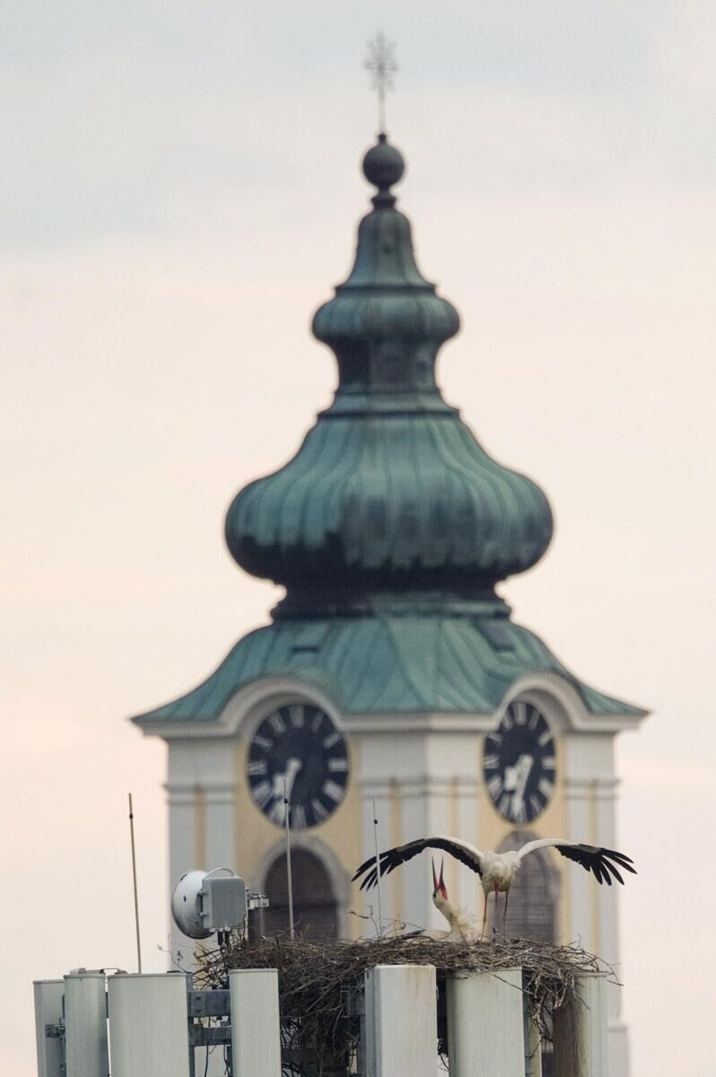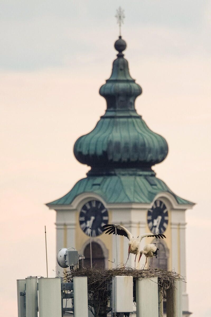 PFARRKIRCHEN. Wie im Vorjahr hat sich auch heuer ein Storchenpaar auf einem Handymast in der Gemeinde Pfarrkirchen bei Bad Hall niedergelassen.