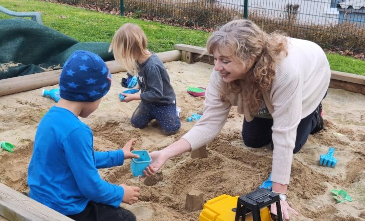 Seit mehr als sechs Jahren betreut Gerda im Raum Steyr regelmäßig Kinder im Rahmen des Leihoma-Dienstes. Bei Familie S. sind die Kinder drei und sechs Jahre alt. „Sie freuen sich jedes Mal riesig, wenn ich komme. Wir spielen, tanzen, schauen Bilderbücher an, basteln“, sagt Gerda. Bei Familie K. betreut sie Zwillinge. „Sie haben mir viel zu erzählen, wenn ich sie aus dem Kindergarten abhole.“ Daheim wird dann gemeinsam im Sandkasten gebaut und gegraben, am liebsten Sandburgen und Tunnel. „Während ich bei den Kindern bin, kann die Mama in Ruhe ihre Hausarbeit erledigen oder auch einmal eine Auszeit mit den Freundinnen nehmen.“