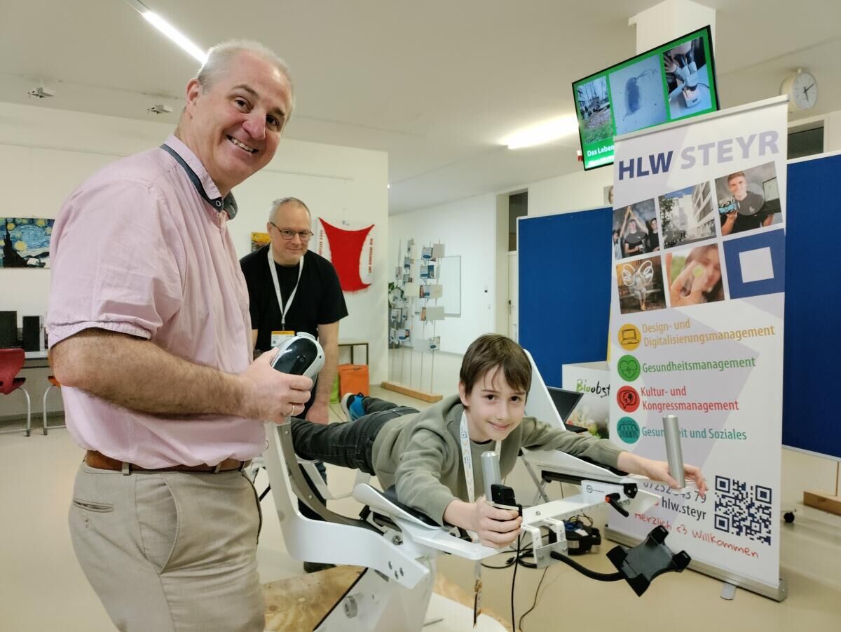 Ein besonderes Highlight war der Icaros-Trainer, ein innovatives Trainingsgerät aus dem Gesundheitsbereich, das in Therapieeinrichtungen eingesetzt wird und das Bewegung mit Virtual Reality verbindet. Mit einer VR-Brille hatten die Kinder das Gefühl, über eine verschneite Berglandschaft zu fliegen und steuerten das Spiel durch ihren gesamten Körpereinsatz.