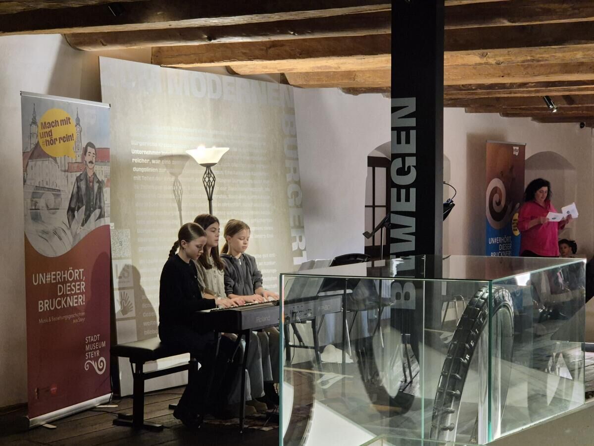 Die Musiker fühlten sich im Ambiente des Stadtmuseums inmitten der Ausstellungsstücke über Anton Bruckner wohl. Zu verdanken war die Auftrittsmöglichkeit einer Kooperation mit dem Stadtmuseum unter der Leitung von Maria Ogawa.
