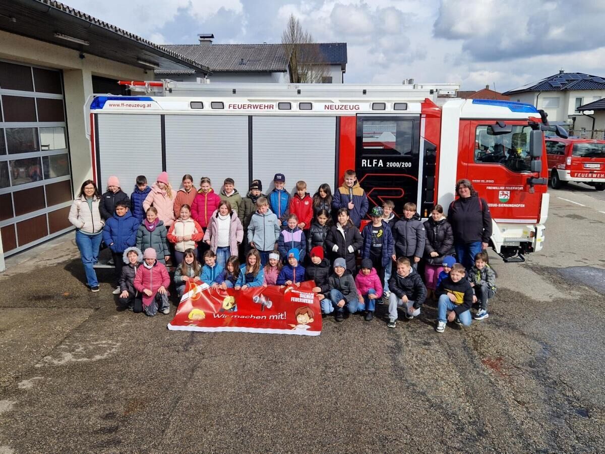 NEUZEUG. Das Programm „Gemeinsam.Sicher.Feuerwehr“ brachte Abwechslung in den Unterricht der Volksschule Sierninghofen-Neuzeug.