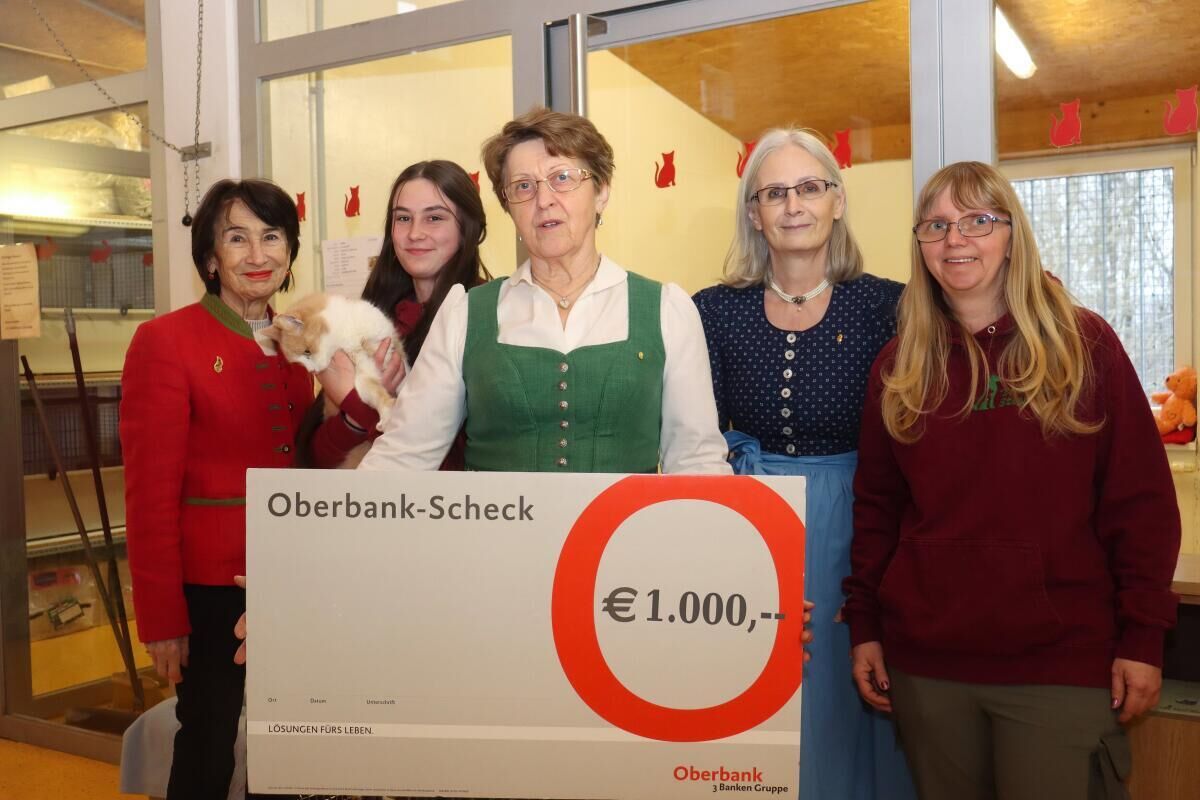 Der Scheck wurde von eine Abordnung rund um Obfrau Lieselotte Mitterhauser an Monika Stadler vom Tierheim übergeben.