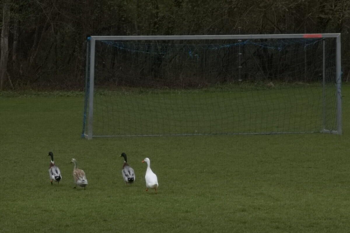 Da sowohl ein Spielball als auch eine gegnerische Mannschaft fehlten, watschelte das Enten-Quintett neben dem Tor vorbei in Richtung Pfannerlackl.