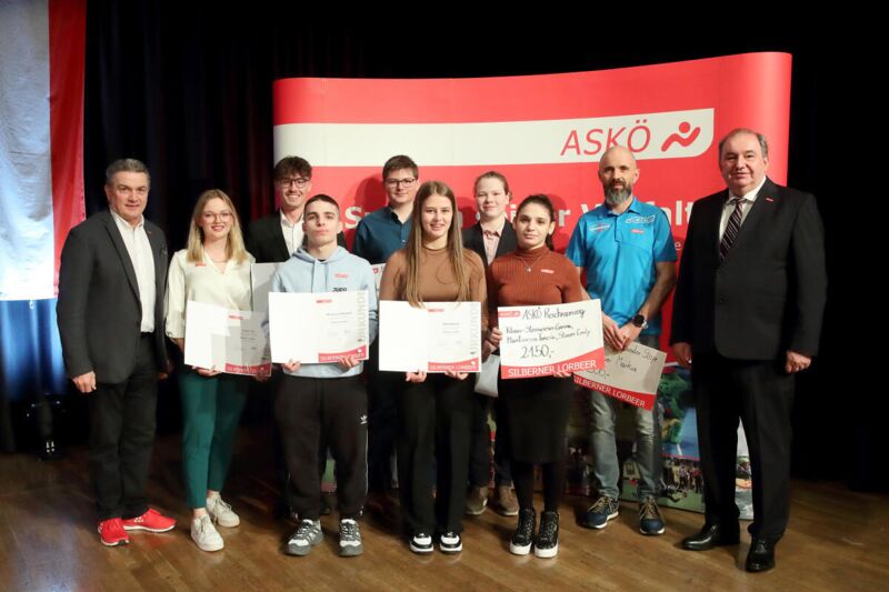 Für Sportler, die fünf Jahre hintereinander Erfolge liefern, gibt es die besondere Auszeichnung der Lorbeer-Silbermünze. Diese erhielt heuer unter anderem Leonhard Wegmayr vom Askö Schibobclub Steyr.