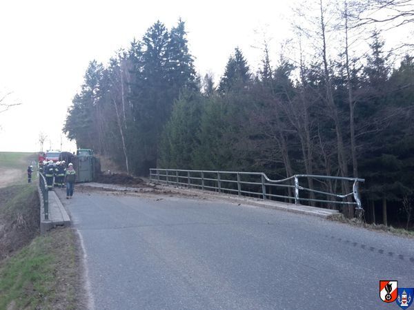 Die 48-jährige Lenkerin des Traktors zog gegen 16.30 Uhr den mit Mist beladenen Anhänger auf der L63 von Eggmanns in Richtung Frühwärts. Auf dem leicht bergab führenden Straßenstück kam der mit Mist voll beladene Anhänger ins Schwingen und geriet in einer leichten Linkskurve mit dem rechten Rad in das Straßenbankette. In weiterer Folge prallte der Anhänger gegen das rechtsseitige Brückengeländer, wodurch dieses auf einer Länge von fast fünf Metern aus der Verankerung gerissen wurde.