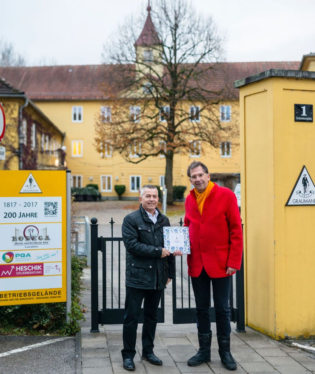 Die Trauner Firma Friedrich Graumann & Co. feiert ihr 200-jähriges Jubiläum (1817-2017) mit einer 128 Seiten starken Chronik der Unternehmensgeschichte. Am Mittwoch übergab Graumann-Eigentümer Tassilo Lang ein Exemplar des Buches an den Trauner Bürgermeister Rudolf Scharinger. Am Fabriksgelände im Stadtzentrum betonten Scharinger und Lang die Verbundenheit des Unternehmens und der Stadt. Am Graumann-Areal wird in den kommenden Jahren ein neuer attraktiver Stadtteil mit Wohnungen, Gewerbeflächen und Büros entstehen.