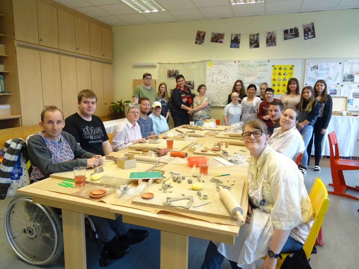 Bei einem Besuch bei der Lebenshilfe bekamen die Schülerinnen an einen Vormittag einen Einblick in den Arbeitsbereich der Menschen mit Beeinträchtigung. Sie durften auch mithelfen beziehungsweise den Beschäftigten bei ihrer Tätigkeit zusehen. Durch die Aufgeschlossenheit wurden zwischenmenschliche Barrieren schnell abgebaut. Zwei Wochen später kamen die Beschäftigten der Lebenshilfe in die Schule. Die Schülerinnen töpferten und spielten gemeinsam mit ihnen. Höhepunkte waren auch die Katze „Herera“, die Nyssa mitgebracht hat, sowie das Harmonikaspielen von Magdalena. Durch diese Begegnungen entsteht gegenseitiges Verständnis und Toleranz.