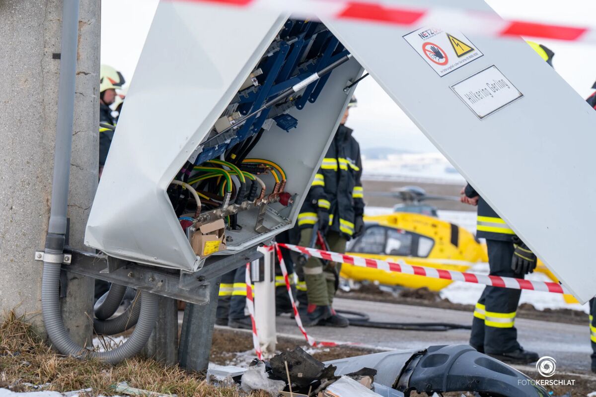 Wie die Polizei berichtet überholte der Unfalllenker (78) einen vor ihm fahrenden Pkw samt Anhänger. „Nach dem Überholvorgang verlor der Lenker in einer Kurve die Kontrolle über sein Fahrzeug, kam rechts von der Fahrbahn ab, touchierte einen Leitpflock, geriet ins Schleudern und prallte frontal gegen einen Strommast, welcher dadurch stark beschädigt wurde“, schildert die Polizei. Der Lenker wurde – laut Polizei mit Verletzungen unbestimmten Grades – per Rettungshubschrauber in den Med Campus III geflogen.