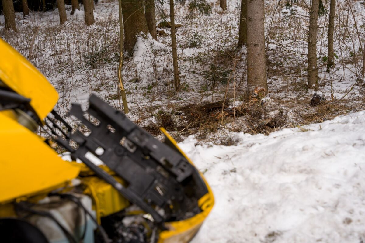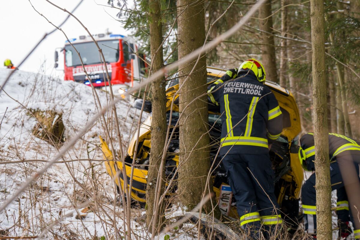 Auto stürzte bei Unfall in Zwettl über Böschung in Wald