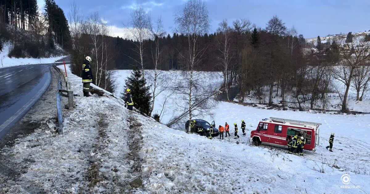 ZWETTL AN DER RODL. Ein Verkehrsunfall ereignete sich auf der B126 bei Zwettl an der Rodl, als ein Auto in einer Kurve von der Straße abkam und sich überschlug.
