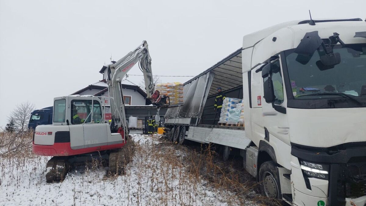 Da der Sattelzug nur im entladenen Zustand geborgen werden konnte, wurden zusätzlich ein Acht‑Tonnen‑Raupenbagger sowie ein Gabelstapler zweier regionaler Unternehmen organisiert. Mit Hilfe des Kettenfahrzeugs und eines speziellen Gabelaufsatzes konnten die rund 30 Euro‑Paletten und Big‑Packs aus dem Laderaum gehoben und über das Feld transportiert werden. Anschließend wurden die Frachtstücke per Stapler in ein Ersatzfahrzeug umgeladen.