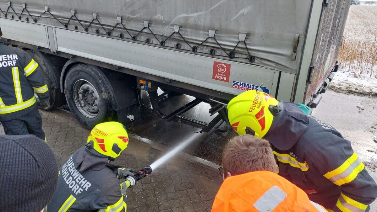 Der voll beladene Lkw rutschte in einer Kurve im Ortsgebiet von Freudenstein über eine Böschung und kam erst in einem angrenzenden Feld zum Stillstand. Das tonnenschwere Fahrzeug verfehlte dabei nur knapp das Feuerwehrhaus der FF Mühldorf.