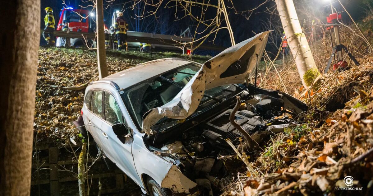 Der Autofahrer war in einer Linkskurve aus noch unbekannter Ursache von der Fahrbahn abgekommen. Bereits am Beginn der Kurve prallte das Fahrzeug gegen die Leitschiene, die dadurch wie eine Sprungschanze wirkte. Der Pkw wurde angehoben, über die Leitschiene hinweg in die angrenzende Böschung geschleudert und in den beginnenden Wald getragen, wo er schließlich von einem Baum gestoppt wurde.