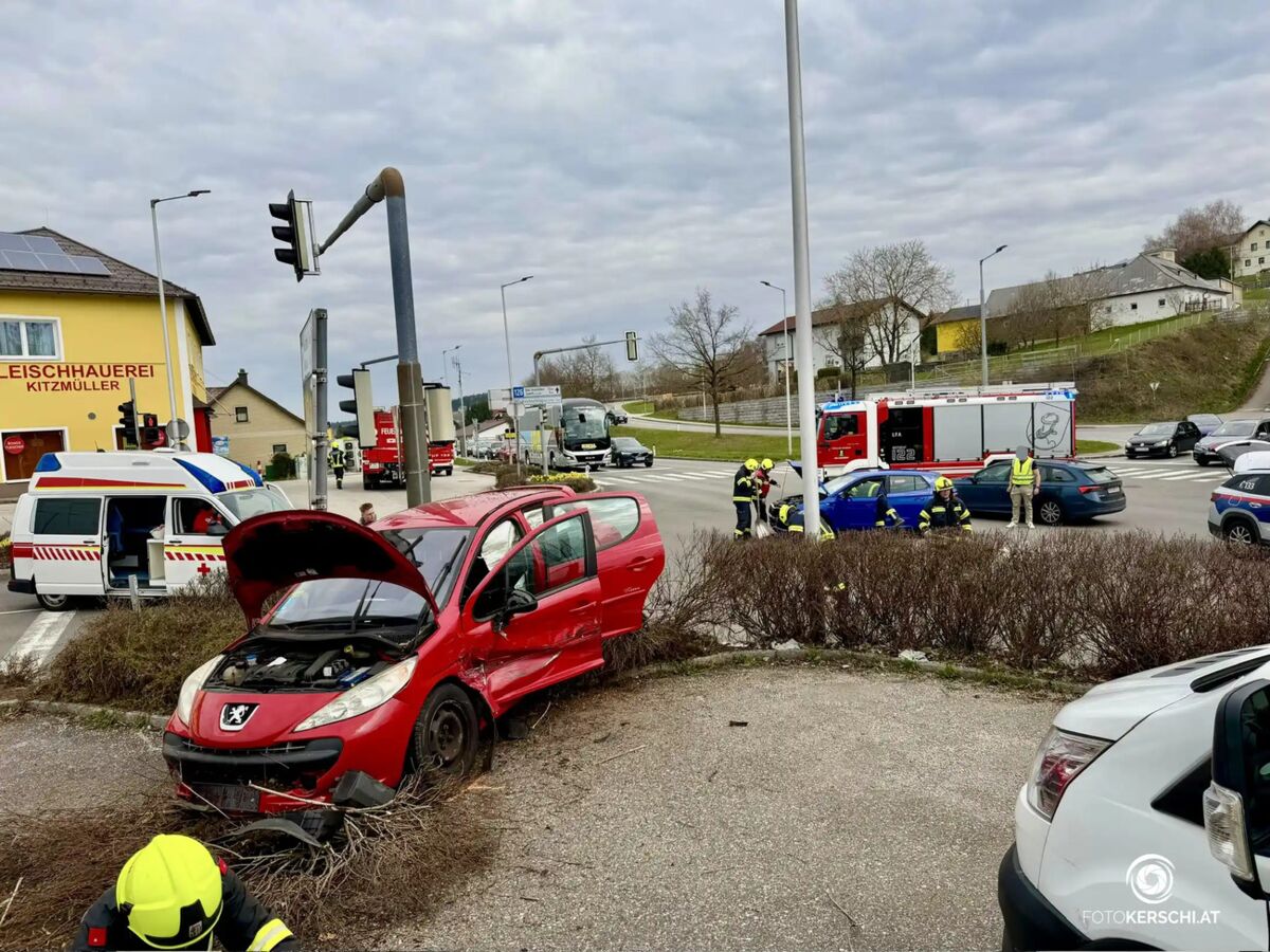 Ein Fahrzeug kam dabei von der Fahrbahn ab, fuhr über eine Böschung auf einen Pendlerparkplatz und blieb dort stehen. Das zweite beteiligte Fahrzeug kam im Kreuzungsbereich zum Stillstand.