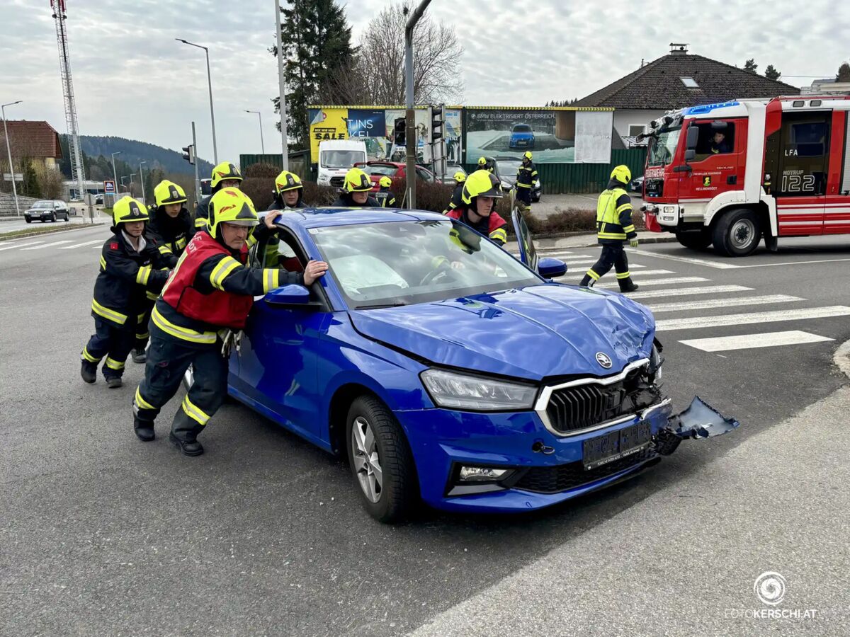 HELLMONSÖDT. Sonntagmittag wurde die FF Hellmonsödt zu einem Verkehrsunfall alarmiert. Im Kreuzungsbereich der Glasau bei Hellmonsödt kam es aus bislang unbekannter Ursache zu einer Kreuzungskollision zweier Pkw.