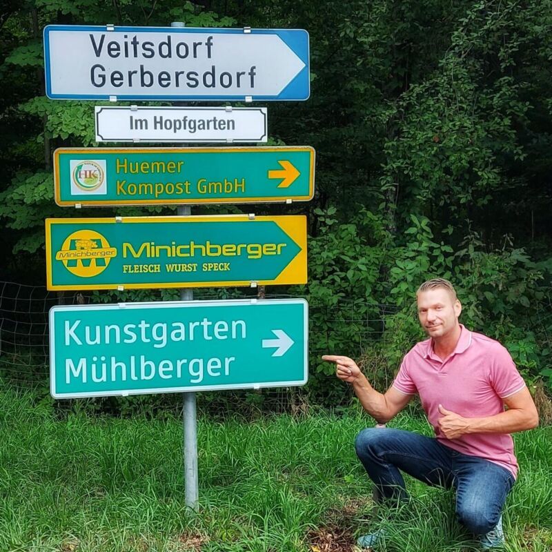 Mühlbergers Kunstgarten befindet sich in Veitsdorf-West 2 und kann nach Absprache besichtigt werden.