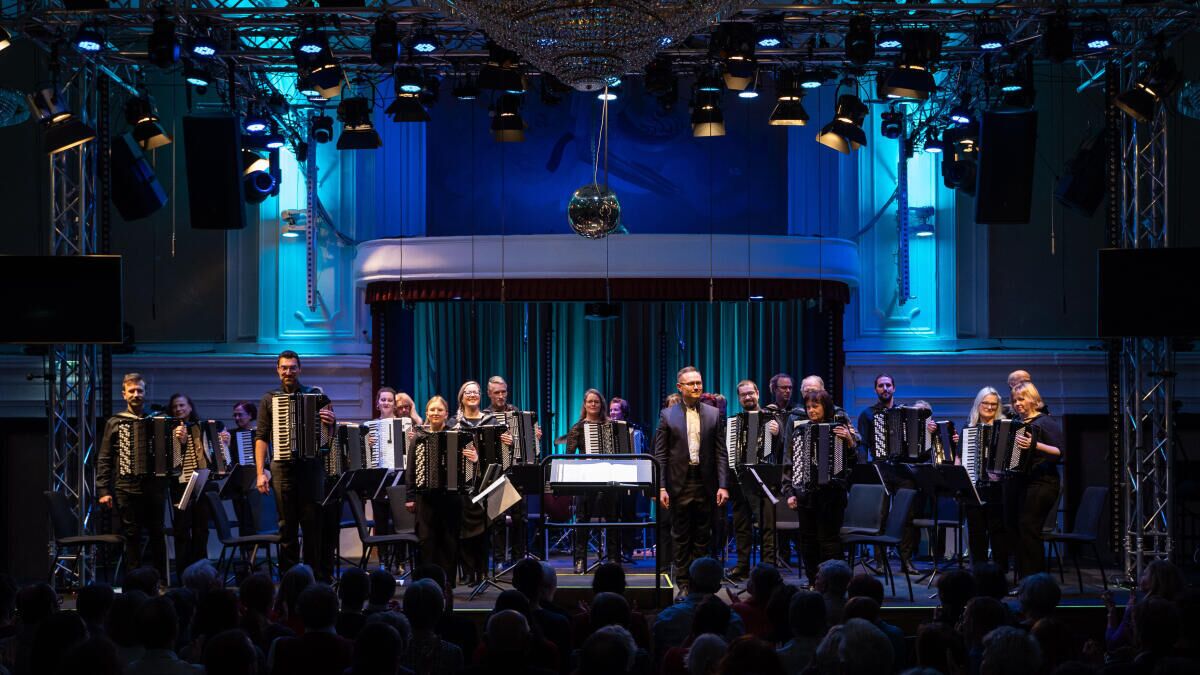 Die Akkordeonisten in diesem Klangkörper sind Profis, Lehrende und auch versierte Hobbyspieler.
