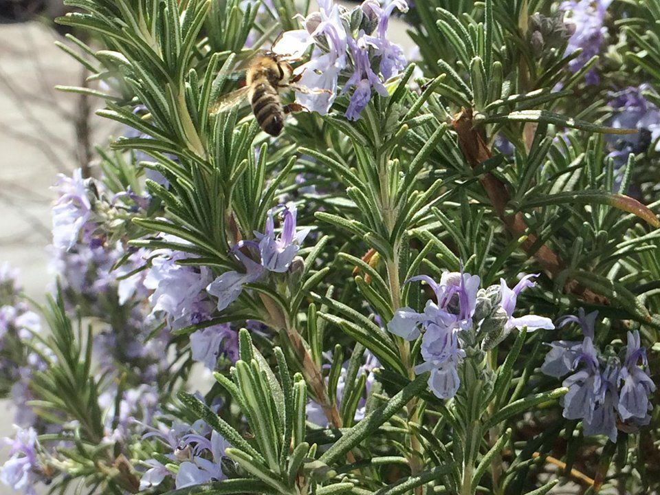 Die Blüten erfreuen nicht nur während der Arbeit im Homeoffice, sondern scheinen auch die besonderen Lieblinge der Bienen geworden zu sein. Täglich kommen sie auf Besuch, um Nektar zu sammeln und um ihre fleißige Arbeit unter Beweis zu stellen. Wie schmeckt Rosmarin-Honig? Kann ich nicht sagen, aber ich denke hervorragend? Schließlich verdienen sich die emsigen Honigbienen auch kein anderes Urteil. Schließlich verrichten sie ihre Tätigkeiten auch in nicht so einfachen Zeiten unbeirrt.