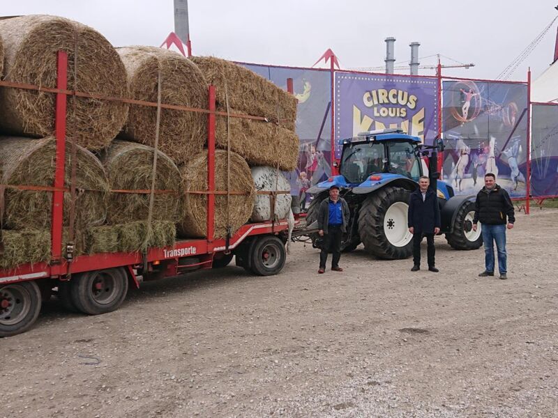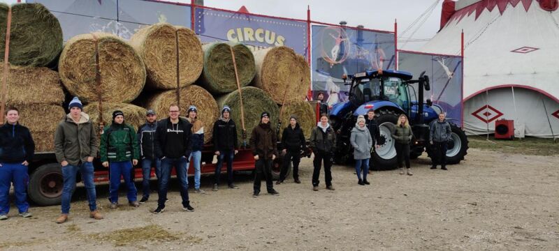 Unter den Unterstützern des Zirkus befinden sich auch die Bäuerinnen und Bauern aus Reichenthal. In guter Zusammenarbeit mit dem Bauernbund Reichenthal konnte die Landjugend Reichenthal den Transport von Heu und Strohballen mit der Firma „G&S Agrar“ organisieren. Am Samstag, den 19.Dezember wurden die Futter- und Einstreuspenden schließlich auch hier dem Zirkus übergeben.