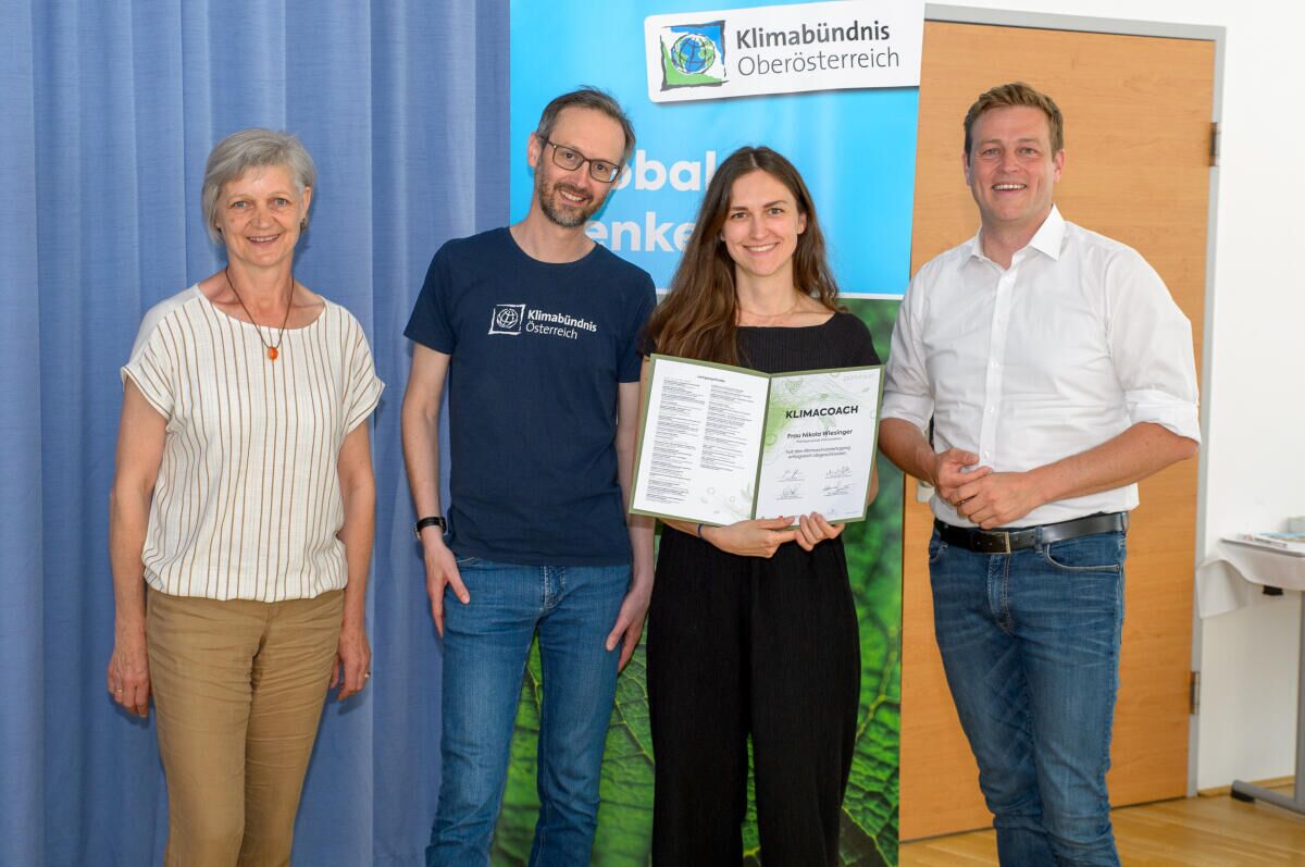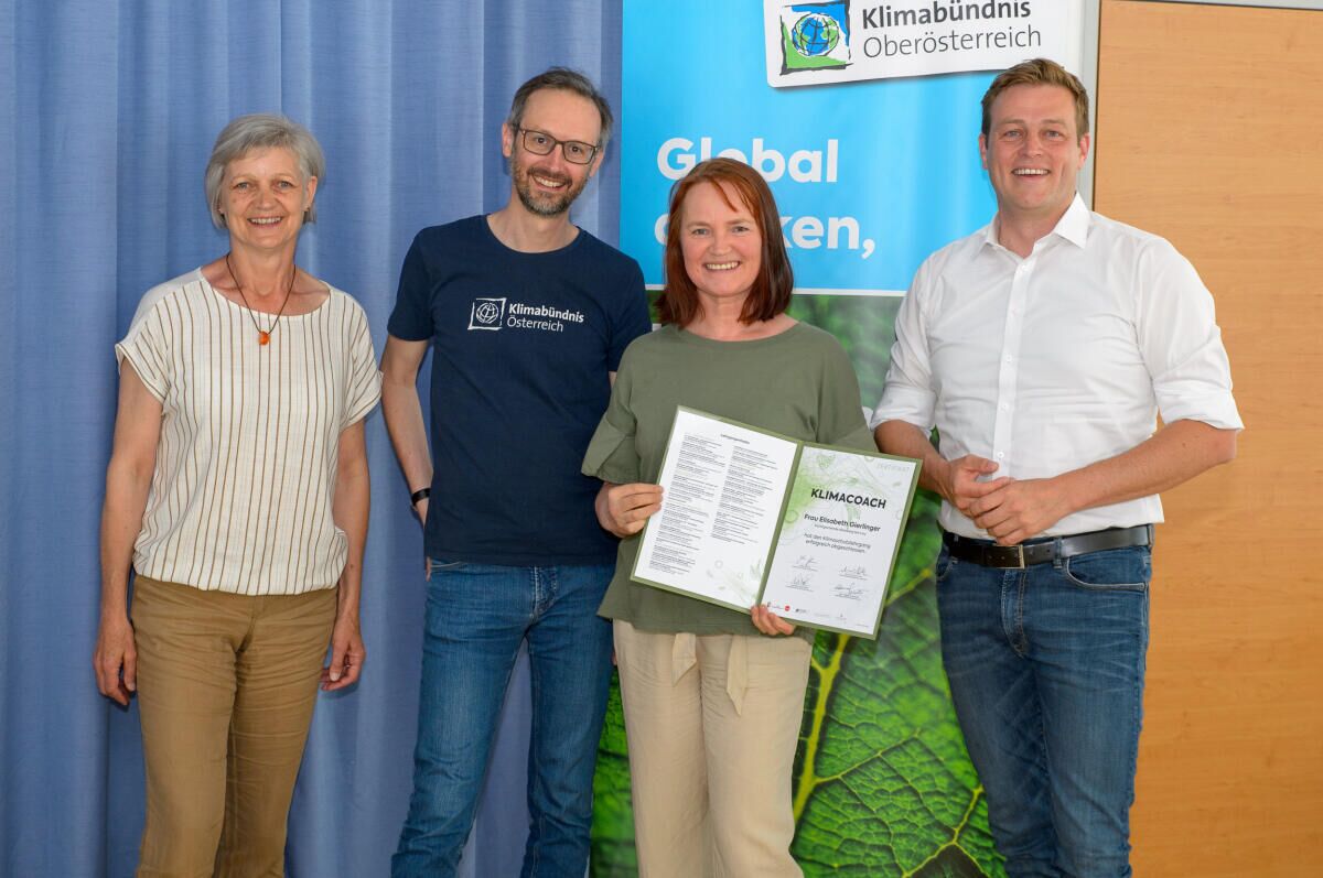 Mit Unterstützung des Landes OÖ organisiert das Klimabündnis OÖ den Klimaschutzlehrgang mit dem Abschluss „Klimacoach für Gemeinden“. Die Ausgebildeten werden ab jetzt im Sinne des Klimaschutzes und der Lebensqualität die oberösterreichischen Gemeinden mitgestalten. Landesrat Stefan Kaineder überreichte feierlich die Auszeichnungen.