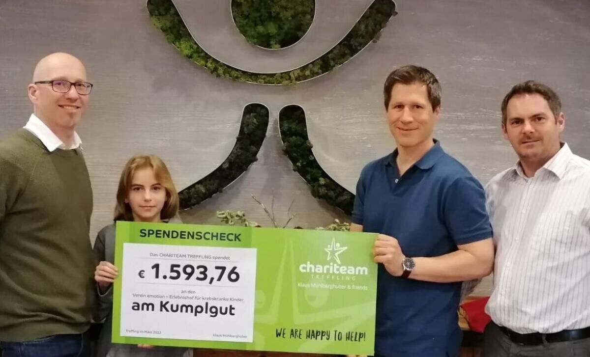 Klaus Mühlberghuber meldete sich im Dezember bei einem Gewinnspiel eines Radiosender an und gewann die Möglichkeit 300 Euro zu spenden und den Betrag auch für sich selbst. Der Familienvater entschloss sich die Gesamtsummen von 600 Euro an das Kumplgut in Wels zu spenden. Zusätzlich wurde vonm Chariteam Treffling einen Glühmoststand organisiert. In Summe konnte man daher 1.593,76 Euro den schwerkranken Kindern am Kumplgut in Wels zukommen lassen.