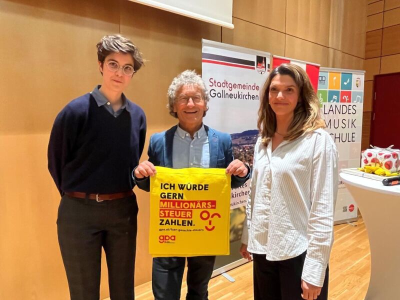 GALLNEUKIRCHEN. Rund 200 Bürger folgten der Einladung von Bürgermeister Sepp Wall-Strasser zum 1. Gallneukirchner Stadtgespräch, welches in Kooperation mit Attac veranstaltet wurde. Millionenerbin Marlene Engelhorn und Barbara Blaha vom Momentum-Institut sprachen über faire Besteuerung.