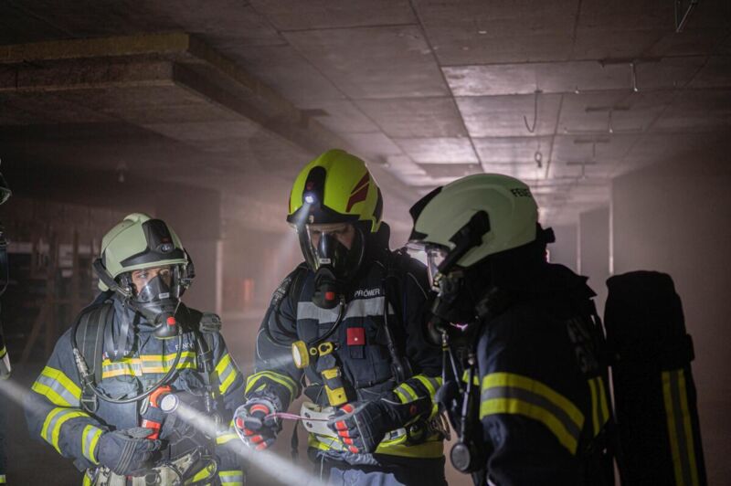 GALLNEUKIRCHEN. Auf einer Baustelle einer Wohnanlage wurde eine Atemschutz-Übung der Feuerwehren des Abschnittes Urfahr abgehalten.