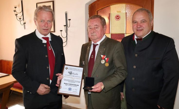 Die Medaille für 25 Jahre Zugehörigkeit erhielten Ernst Prinz, Peter Loschka, Josef Panwinkler, Rupert Springer, Ernst Mayr und Jürgen Hofer. Mit der Verdienstmedaille in Silber wurden Stephan Hahn und Josef Hießl ausgezeichnet. Eine sehr hohe Auszeichnung erhielt der geschäftsführende Obmann Robert Hofstadler - Das Landesverdienstkreuz mit Schwert in Gold zählt zu den höchsten Auszeichnungen des Kameradschaftsbundes.