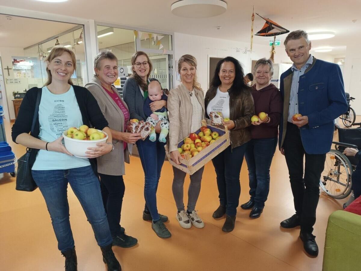 URFAHR-UMGEBUNG. Die bäuerlichen Vertreter des Bezirks Urfahr-Umgebung begleiten seit Jahren den landesweiten Tag des Apfels - dieser wird immer am zweiten Freitag im November begangen. Aus diesem Anlass wurde auch das Bezirksseniorenheim in Hellmonsödt besucht und die Bewohner sowie das Personal mit Äpfeln versorgt.
