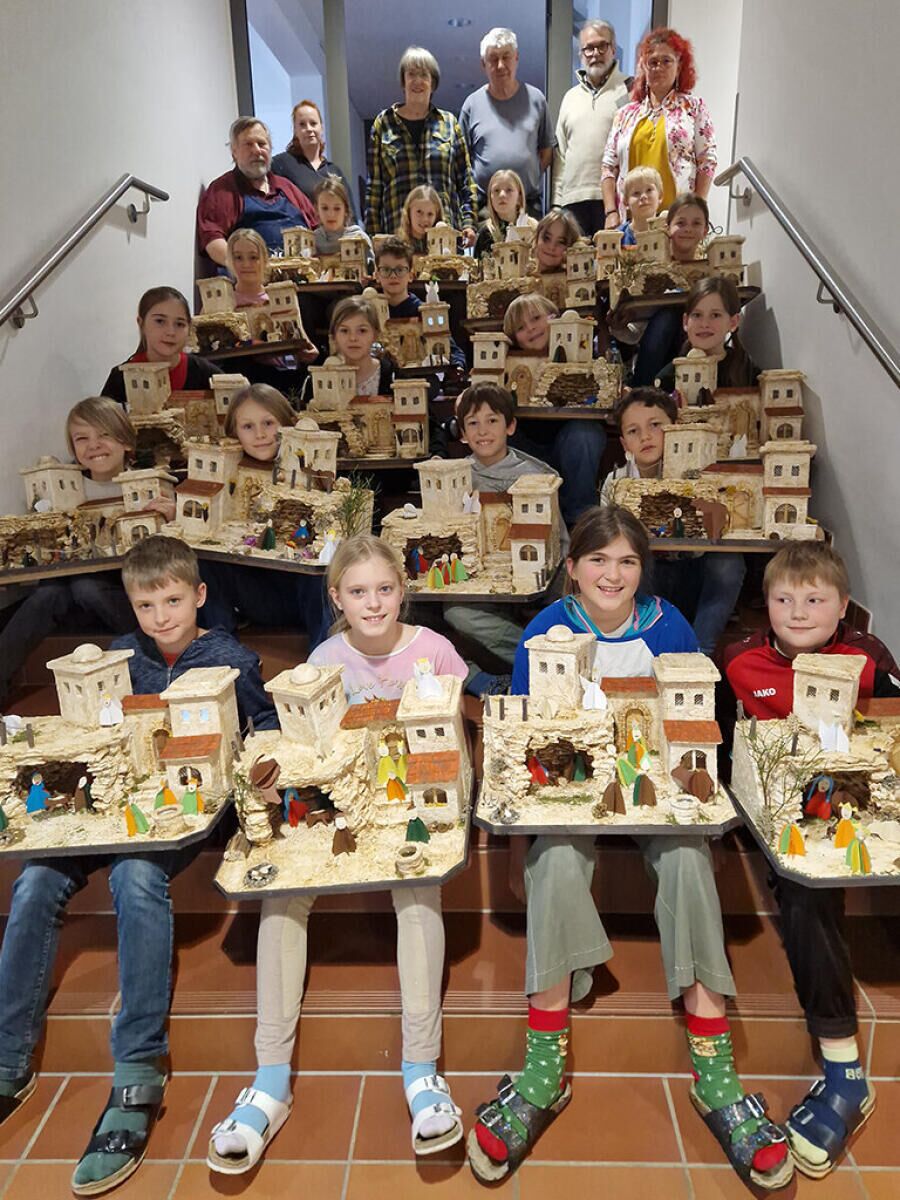 Die 23 Junior-Krippenbaumeister konnten ihre Arbeiten bereits bei der Weihnachtsfeier in der Volksschule präsentieren.