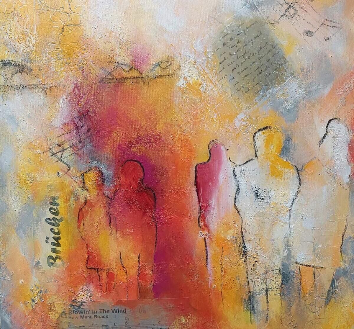 Unter dem Titel „Bild(ge)schichten“ lädt die Ausstellung ein, bei den einzelnen Bildern nicht nur die Geschichte dahinter zu entdecken, sondern eigenen Gedanken und Fantasien nachzugehen. Die beiden Malerinnen schicken die Betrachter auf Entdeckungsreise. In ihren Werken spielen sie mit Farbe, Materialien und Schichten aus Acryl und Mischtechnik.