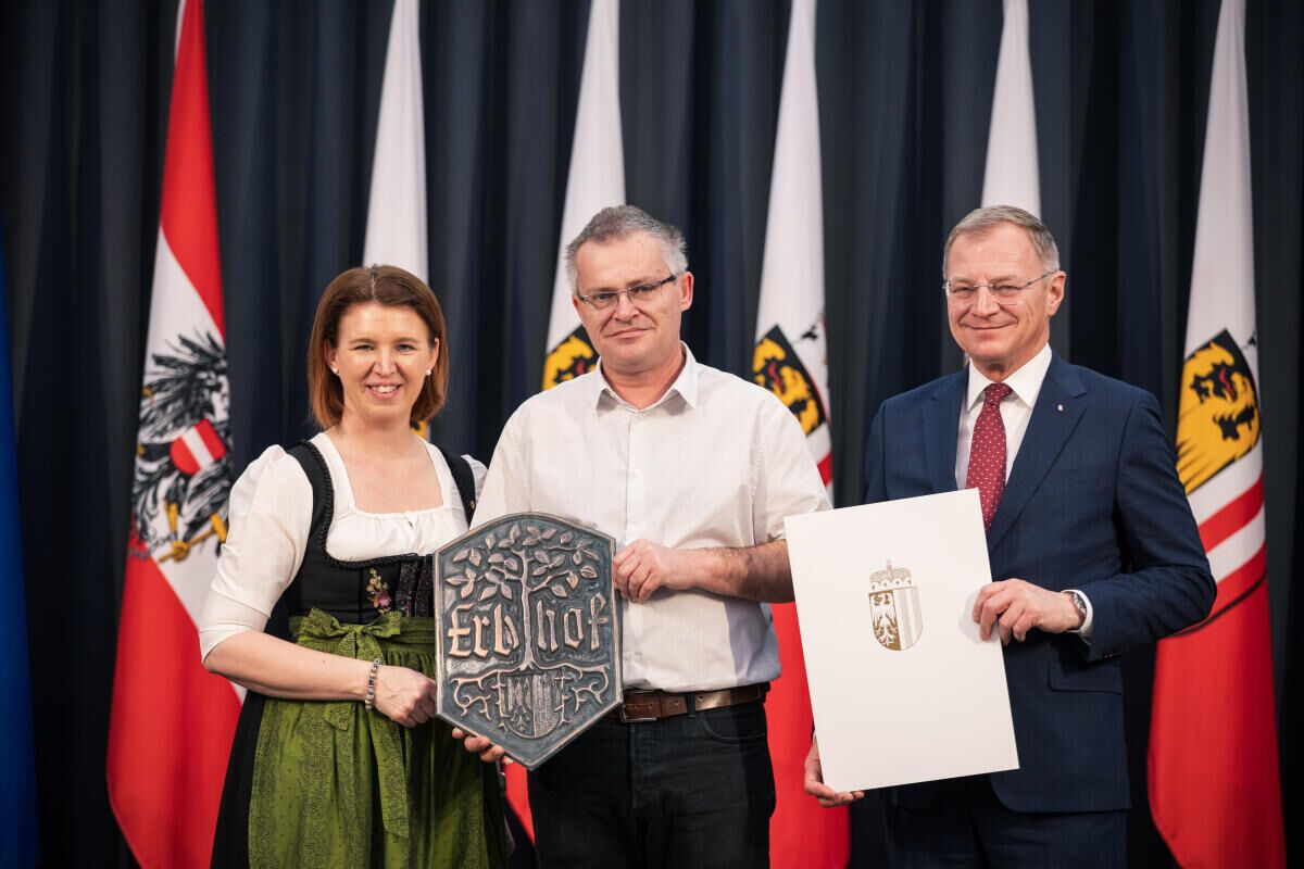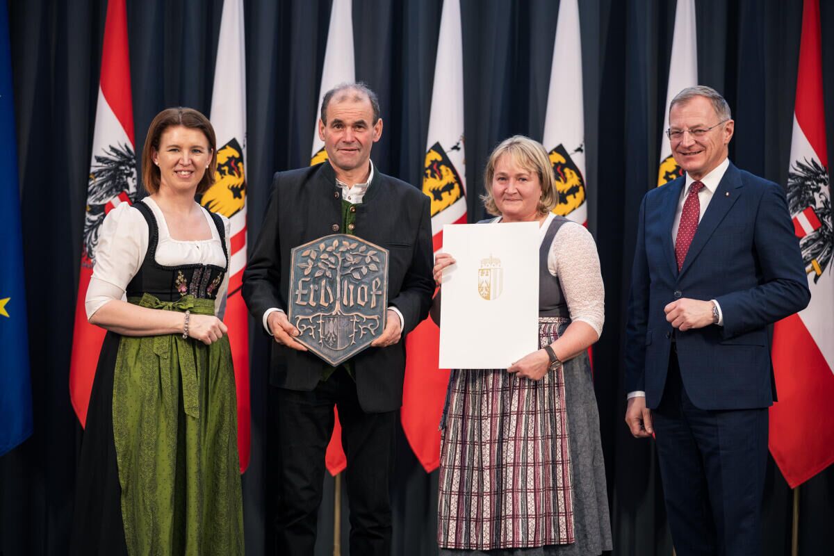 Die oberösterreichische Landesregierung würdigt mit dem Ehrentitel ‚Erbhof‘ jene landwirtschaftlichen Betriebe, die seit mindestens 200 Jahren von derselben Familie bewirtschaftet und an die nächste Generation weitervererbt werden. Insgesamt 21 Betriebe aus Oberösterreich wurden bei dieser Feier in den Erbhof-Stand aufgenommen.