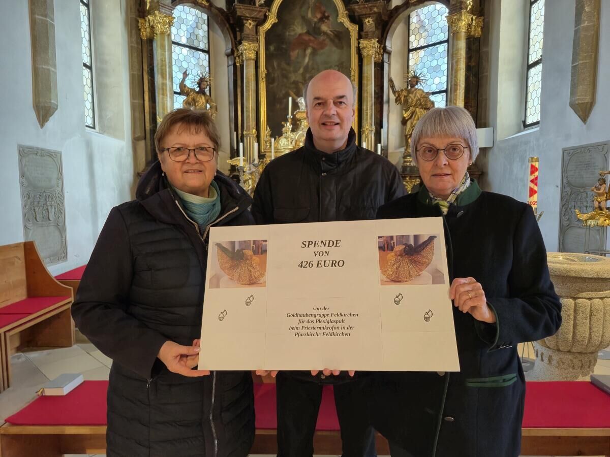 FELDKIRCHEN. Die Goldhaubengruppe Feldkirchen engagiert sich kirchlich und spendete soeben 426 Euro für ein Plexiglaspult, lässt deren Obfrau Erika Lindorfer wissen.