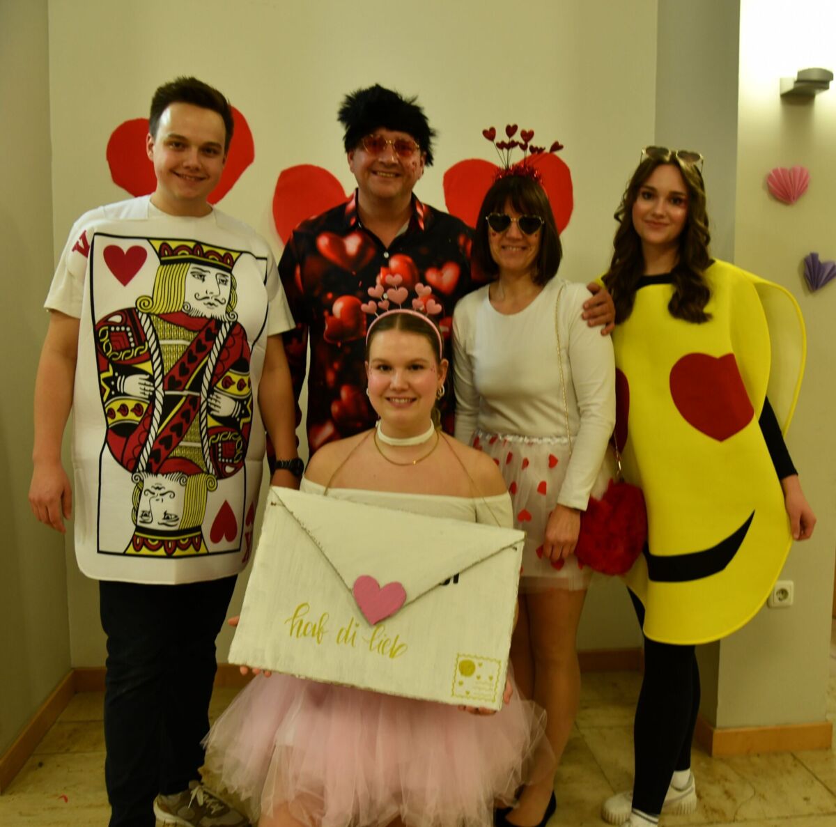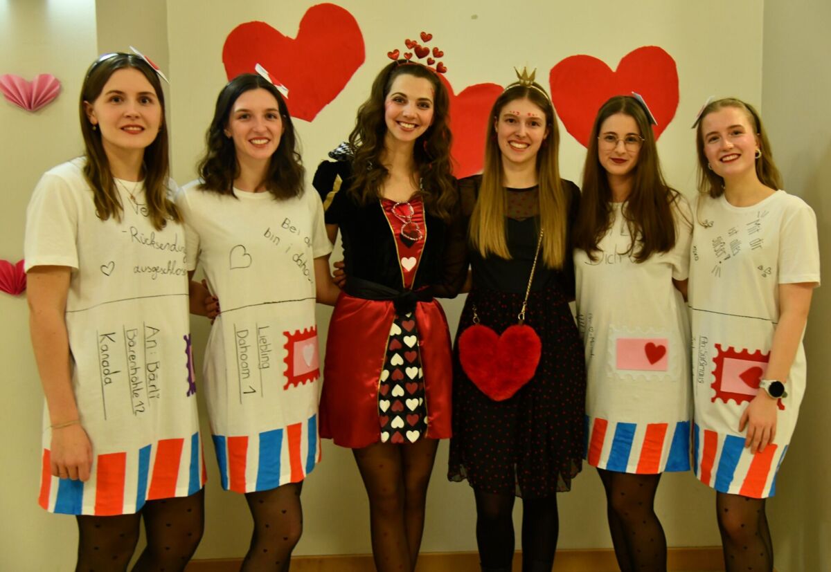 Ob als charmante Herzdamen, schöne Spielkarten, originelle Love-Charts Hitstürmer, Tinder Flammen oder auf „Wolke 7 schwebend vor Glück“: die Kreativität der Maskierungen war wieder enorm. Auch süße Schweinchen, fleißige Imker, Fuchs und Hasen sowie kunstvoll dargestellte gebrochene Herzen, die zeigten, dass auch Liebeskummer mit Augenzwinkern gefeiert werden kann, tummelten sich auf der Tanzfläche. Kunstvoll gestaltete Liebesbriefe ließen sich das Valentins-Date ebenfalls nicht entgehen.
