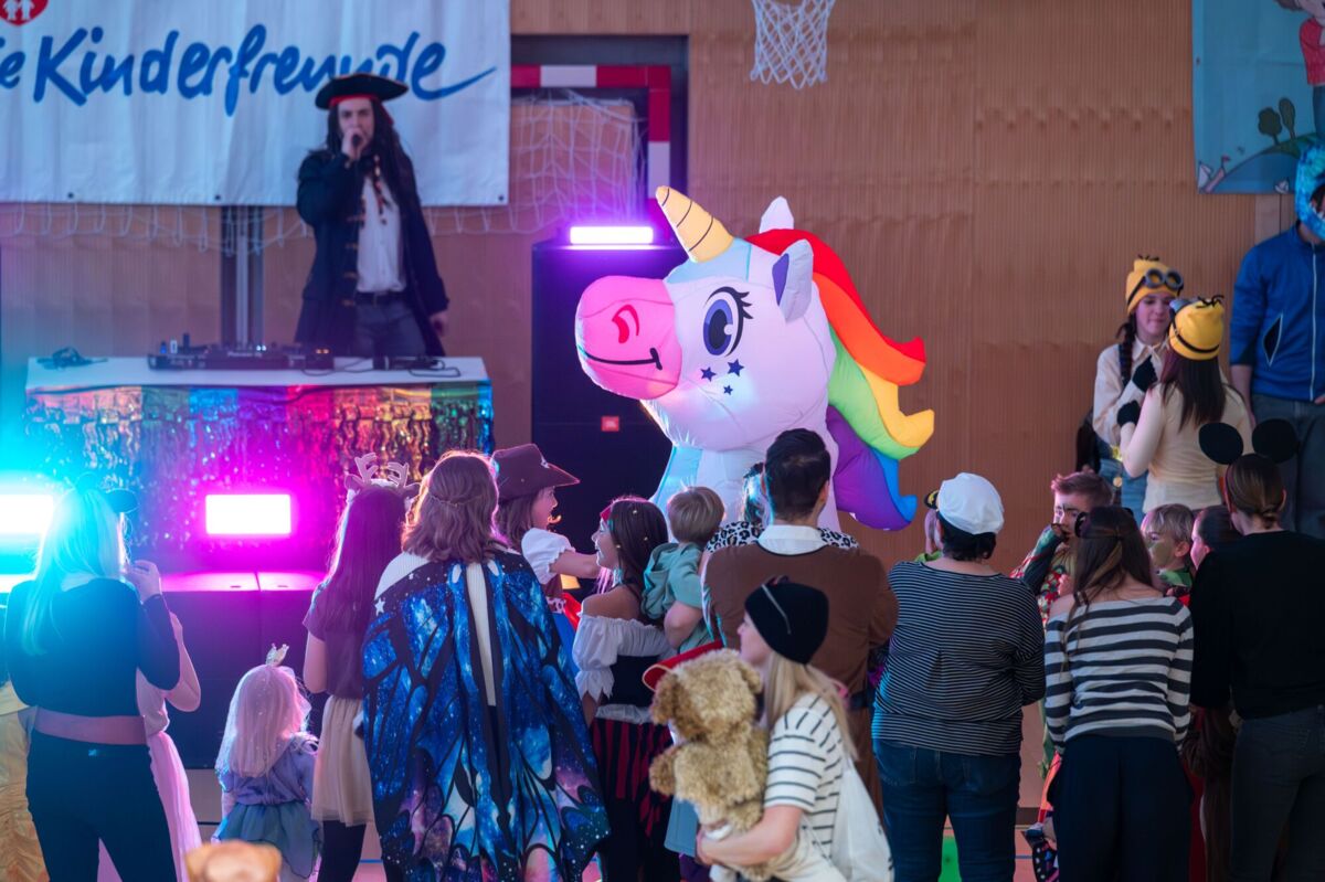 FELDKIRCHEN. Eine ganz besondere Faschingsdisco feierten Familien in Feldkirchen. DJ JayLian sorgte für Discofeeling und plötzlich stand ein Einhorn mitten in der tanzenden Menge.