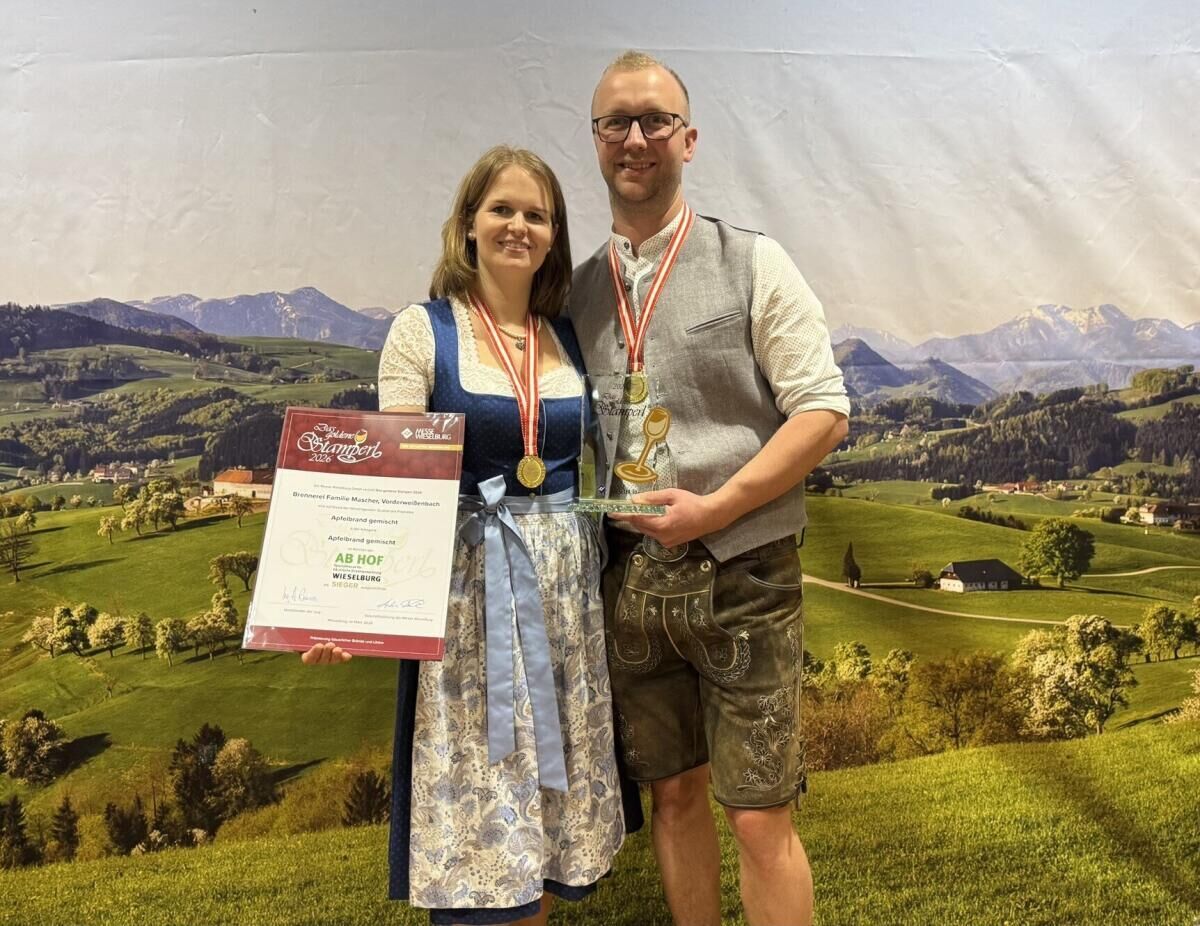 VORDERWEISSENBACH. Große Freude herrscht bei Sandra und Daniel Mascher aus Vorderweißenbach. Ihr Apfeledelbrand wurde bei der Prämierung „Goldenes Stamperl“ auf der Ab-Hof-Messe in Wieselburg, Niederösterreich, zum Sieger gekürt.