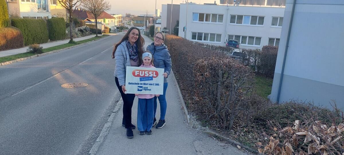 Hinweis: Der 100-Euro-Gutschein der Fussl Modestraße, der im Bezirk Urfahr-Umgebung online verlost wird, ist nur nach Vereinbarung mit Tips-Redakteurin Jacky Stitz (j.stitz@tips.at bzw. Tel.: 0732 7895 550)bei Tips, Promenade 23, 4010 Linz, mit der Gewinnbenachrichtigung und einem Lichtbildausweis abzuholen. Der Gutschein wird nicht verschickt!