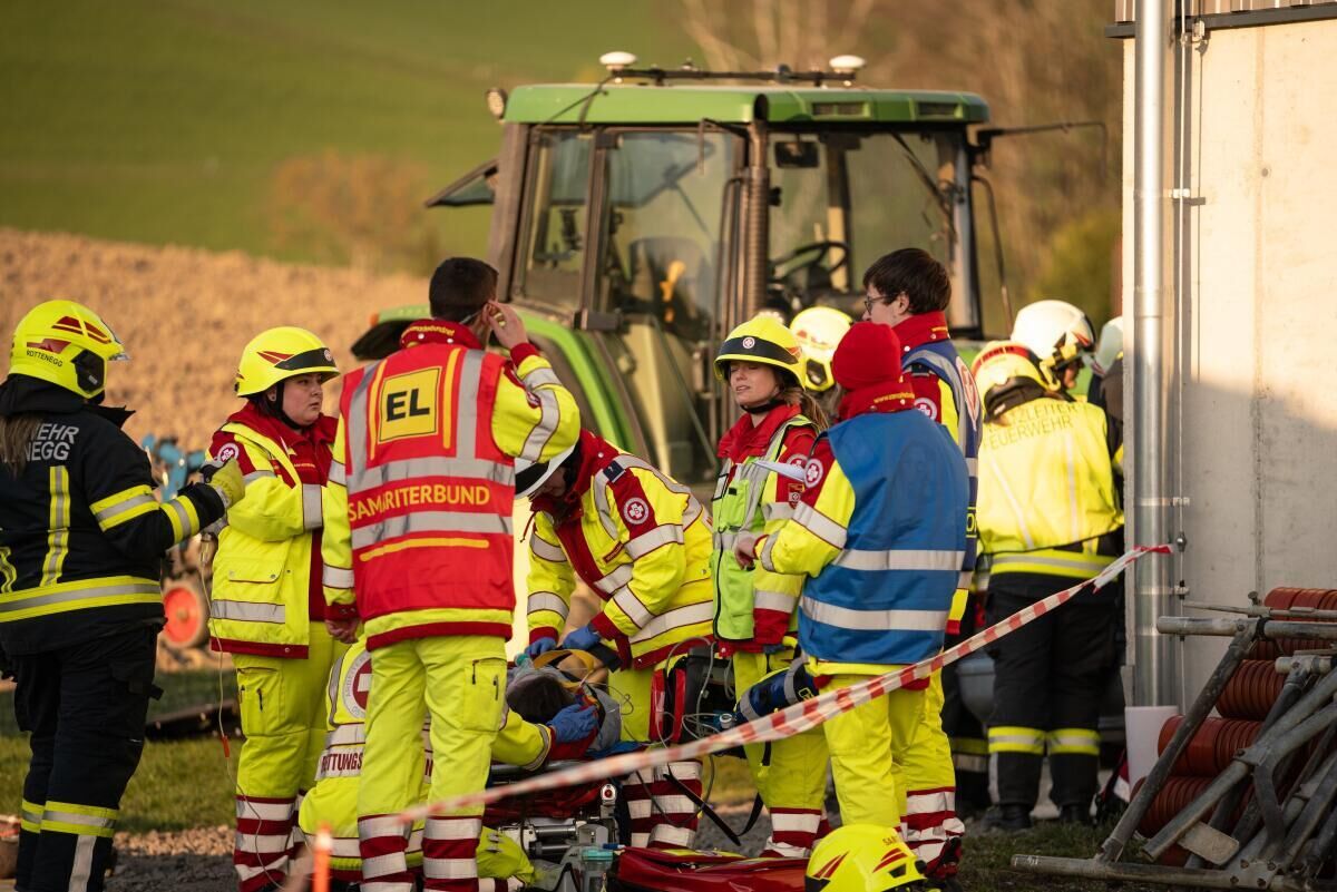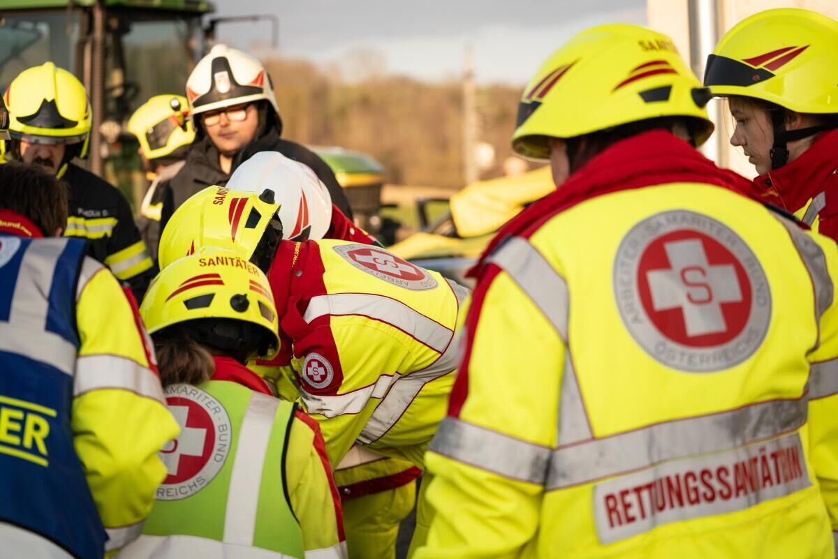 Ein Traktorfahrer erleidet einen medizinischen Notfall, verliert die Kontrolle und rammt mit der Frontgabel einen PKW. Zwei Insassen werden eingeklemmt und schwer verletzt. Dieses Szenario bildete die Grundlage für eine Übung des Samariterbundes Linz in Rottenegg.