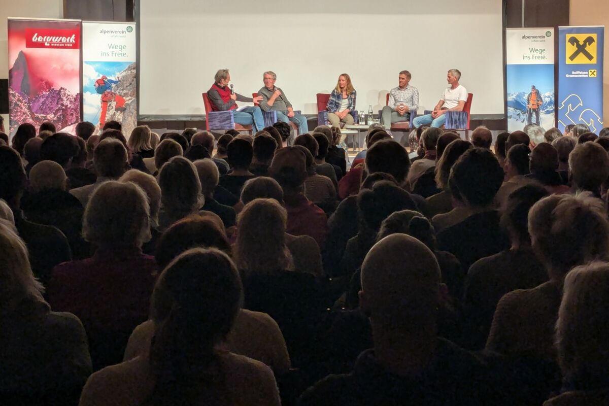 Ein Höhepunkt des Abends war das anschließende Filmgespräch mit Bergführerin Magdalena Hofinger, dem langjährigen Tourenpartner Jörg Hofmacher, Sohn Michael Priesner sowie Extremsportler Wolfgang Fasching. Dabei wurden die zentralen Themen des Films – Freiheit, Verantwortung und gelebte Werte – aus unterschiedlichen Perspektiven beleuchtet und in die heutige Zeit eingeordnet.