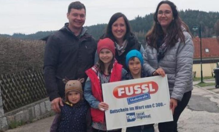 Auf die Frage nach der Lieblingszeitung hatte Mama Angelika die richtige Antwort parat: „Die Zeitung Tips natürlich“, sagte sie – und schon wechselte ein Gutschein über 300 Euro den Besitzer. Und auch die Kinder Elina (9), Lukas (6) und Vera (4) freuten sich über den Gewinn. „Den Gutschein werden wir bestimmt bald einlösen“, zeigte sich Papa Gerald begeistert. Wer das Glücksengerl nicht persönlich auf der Straße antrifft, kann online auf https://www.tips.at/gewinnspiele einen 100-Euro-Gutschein der Fussl Modestraße gewinnen. Insgesamt werden Warengutscheine im Wert von 28.800 Euro verteilt.
