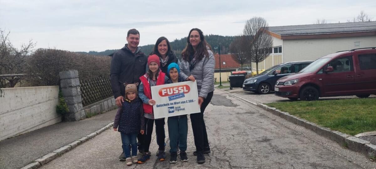 URFAHR-UMGEBUNG. Das Glücksengerl ist wieder im Bezirk Urfahr-Umgebung unterwegs, um treue Tips-Leser mit Gutscheinen der Fussl Modestraße zu überraschen. Dieses Mal überraschte es eine Familie aus Vorderweißenbach.
