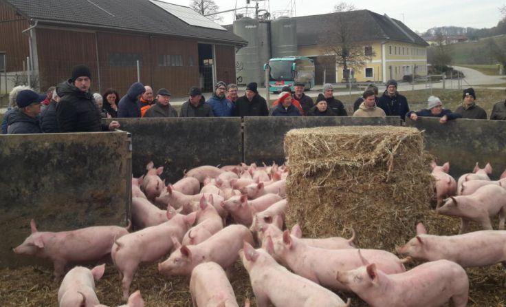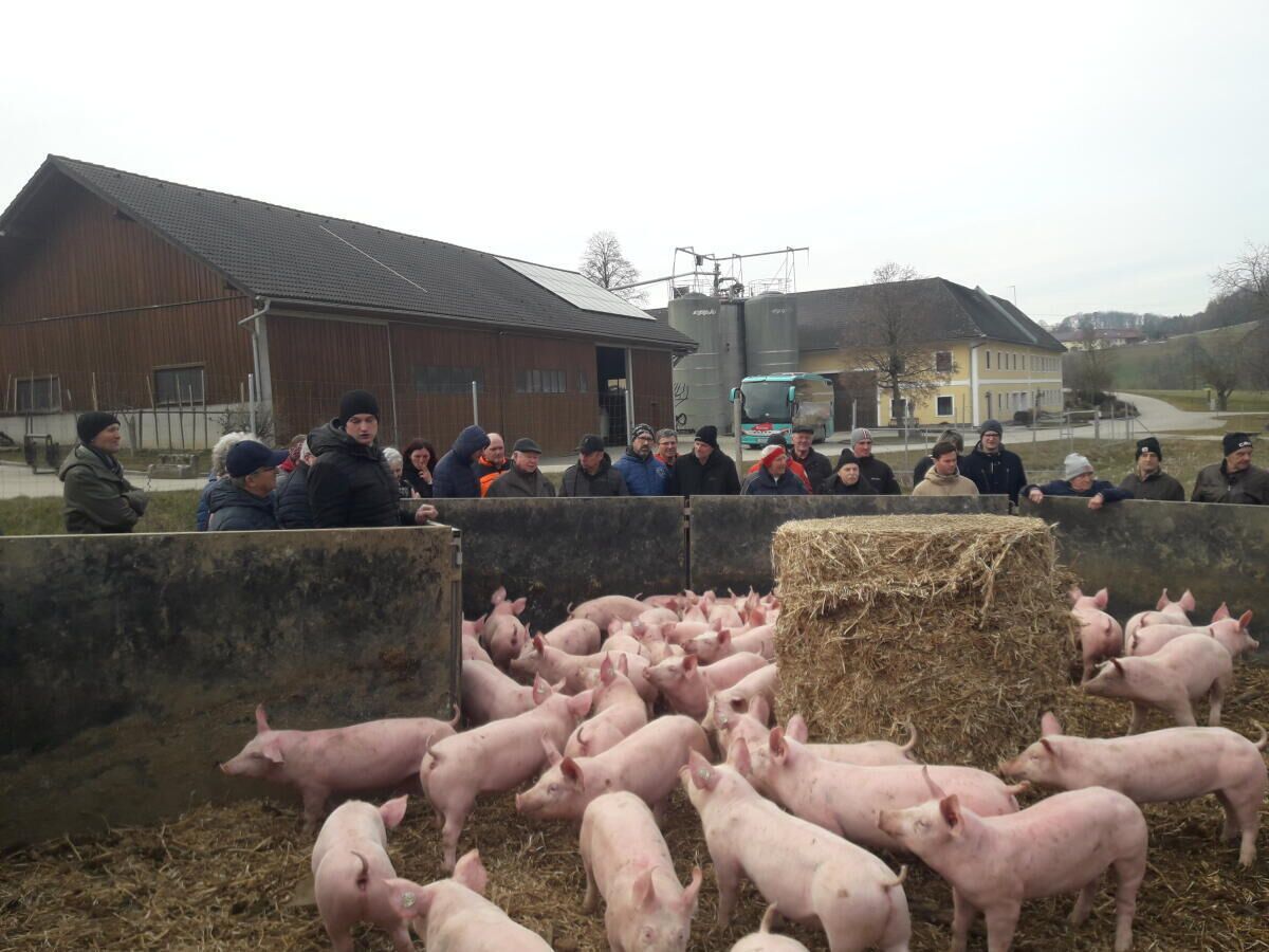 Der erste Halt der Weiterbildungsfahrt war bei der Biomasseheizung und der Müllverbrennungsanlage der Firma Linz AG. Weiter ging es zum Steyr-Traktorenwerk nach St. Valentin (Bezirk Amstetten). Der letzte Halt brachte die Teilnehmer nach Ried/Riedmark (Bezirk Perg) auf den Kirnbauernhof der Familie Diwold zu den „Wanderschweinen“. Neben dem Tierwohl-Stall wurde die Haltungsform auf einer umzäunten Feldfläche eingeführt. Futterstelle und Schutzdach sind mobil und werden wie eine Fruchtfolge zu jeder Jahreszeit am Feld weiter versetzt, sodass eine Menge Kompost zur Bodenverbesserung und zur Kreislaufwirtschaft anfällt.